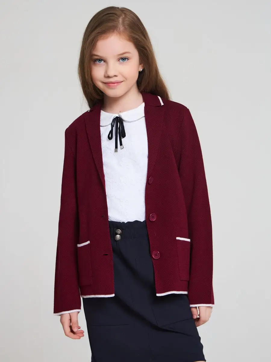 Кардиган Пиджак для девочки Школьный вязаный Жакет кофта