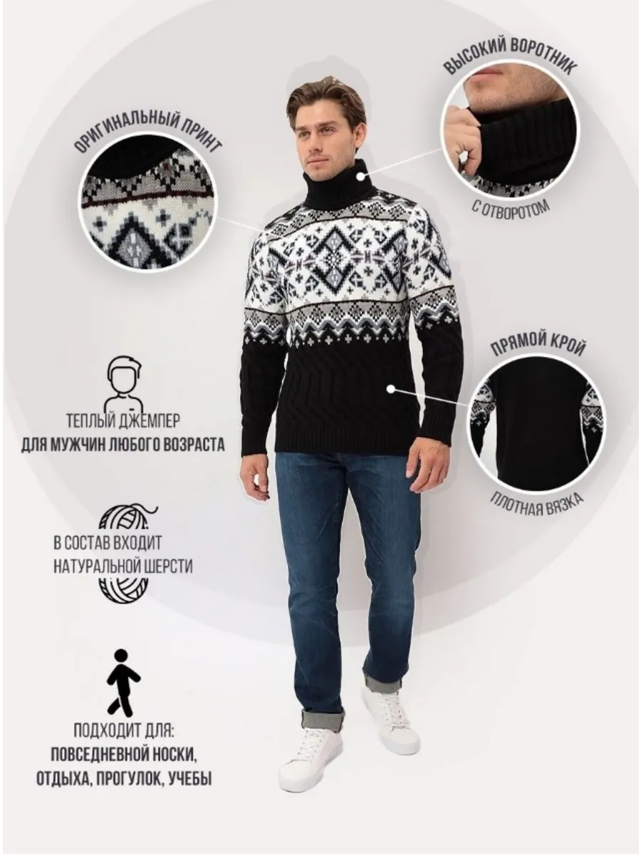 Идеален в качестве подарка ! Толстый теплый, комфортный, мужской вязаный зимний свитер. Идеален для холодной зимы. Оригинальный воротник-стойка. Пряжа Турция из натуральной шерсти. Для женщин подходит как оверсайз свитер. Классический однотонный с оригинальной вязкой, из теплой пряжи с длинными рукавами, садится на любой тип фигуры и подойдет абсолютно всем. Вязаный свитер с подходит под повседневный стиль одежды кэжуал. Модель прямого силуэта прекрасно выделит достоинства и скроет недостатки. Страна производства Россия. Идеальный подарок на день рождения и Новый год для всей семьи. Можно подарить мужу, сыну, молодому человеку. При выборе размера стоит обратить особое внимание на фото с размерной сеткой и пользоваться сантиметром для более точного определения своего размера. Рекомендуем деликатную ручную стирку 30 градусов, сушить в расправленном виде на горизонтальной поверхности. Мы предлагаем своим покупателям отличное соотношение цены и качества.