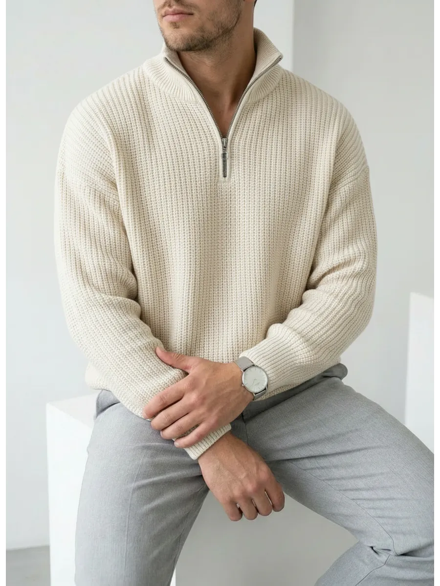 HEDRICY - ваш надежный компаньон в мире моды, и наш новый вязаный свитер на молнии с воротником - выполнени из 100% хлопка. Это универсальный вязаный свитер, который подойдет как мужчине, так и женщине - это вершина комфорта и стиля, сочетающая в себе все последние тенденции моды года. С приходом осени и зимы, тепло и комфорт становятся на первое место, и наш джемпер на молнии лучший выбор для тех, кто ценит элегантность. Товар изготовлен в Россия из высококачественных материалов, и обеспечивает комфорт и тепло, при этом не колется и не сковывает движения. Свитер свободный и при этом не мешковатый. Воротник и крупная вязка добавляют стиль и эксклюзивность. Идеально подходит как для офисного стиля, так и для повседневного. Хорошо сочетается с пальто и подходит под базовую куртку. Он также подойдет для юношей и подростков, предпочитающих размер оверсайз, подчеркивающий молодежный вкус и стиль. Ко всему прочему, данная модель будет отлично сочетатся с любым элементом вашего гардероба, все зависимости от того, какой стиль вы предпочитаете. В нашем катологе представлена широкая линейка размеров. Данная модель сохраняет свою форму и качество после бережной стирки, не садится и не растягивается. Мы гордимся высоким качеством наших изделий, и этот джемпер на молнии не исключение. Сейчас у вас есть возможность приобрести эту модель по специальной акции со скидкой. Добавьте в свою жизнь ещё больше стиля и элегантности вместе с нашим брендом одежды. Данный товар идеально подойдёт в качестве новогоднего подарка для женщине - мужчины или подарка на день рождение. Также в магазине нашего бренда представлены разнообразные варианты цветов данной модели, которые обязательно впечатлят вас на новые образы в стиле Old Money и аутфиты, а также оставят неизгладимое впечатление на всех.