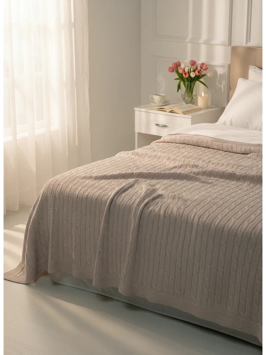 Вязаный плед 150х200 см от Российского бренда HEDRICY изготовлен из 100% хлопка, что обеспечивает мягкость и комфорт при использовании. Мы создали новую модель, значительно легче и комфортней. Однотонный дизайн с вязаными косами позволяют пледу легко сочетаться с любым интерьером. Плед размером 150 на 200 см отлично подходит как покрывало для двуспальной кровати, дивана или кресла, как одеяло или как элемент декора. Он достаточно большой, чтобы обеспечить комфортное покрытие, и достаточно тонкий, чтобы не создавать лишнего объема. Хлопковый плед обладает рядом преимуществ, таких как теплоизоляция, воздухопроницаемость, гигроскопичность и экологичность. Он также прост в уходе и долговечен. Плед является универсальным аксессуаром, который можно использовать в различных помещениях и ситуациях. В спальне: как покрывало на кровати или как одеяло для сна. В гостиной: как накидка на диван или кресло, как дополнительный элемент декора или как плед для отдыха на полу. В детской комнате: как одеяло или покрывало на детскую кроватку, как игровой коврик для ребенка. На даче: как покрывало или как одеяло на террасе или в беседке. На пикнике: как одеяло, на котором можно сидеть или лежать, как защита от солнца или от прохлады. Хлопковый плед может стать прекрасным подарком на любой праздник, например, на день рождения, Новый год, Рождество, 8 марта, 23 февраля или просто как знак внимания. Он станет прекрасным выбором для создания уютной новогодней атмосферы в доме! Данная модель пледа доступна в различных размерах, включая 120x220 см, 160X220 см, 180x220 см, 200X220 см и 220X240 см. Вы можете выбрать наиболее подходящий размер в зависимости от ваших предпочтений и целей использования пледа. Обращаем ваше внимание, плед достаточно тяжелый, т.к. выполнен из 100% хлопка и это является преимуществом нашего изделия. Изделие из натурального хлопка не будет таким легким, как синтетические пледы: пушистый, плюшевый, флисовый и другие. !! ВНИМАНИЕ !! Оттенки пледа могут незначительно отличаться от изображений на сайте. Это связано с особенностями поставок пряжи — возможны небольшие вариации цвета в полутонах.