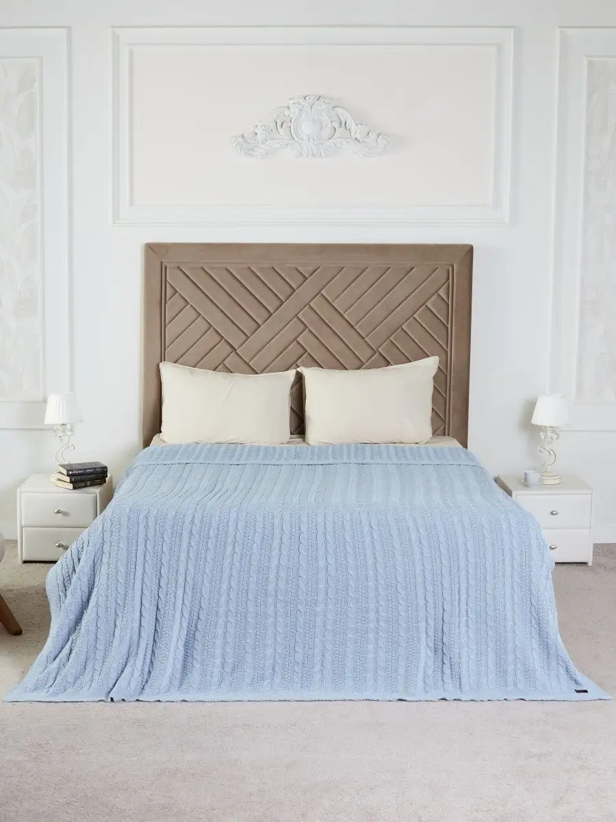 Вязаный плед 160х220 см от Российского бренда PULLTON изготовлен из 100% хлопка, что обеспечивает мягкость и комфорт при использовании. Однотонный дизайн и отсутствие рисунка позволяют пледу легко сочетаться с любым интерьером. Плед размером 160 на 220 см отлично подходит как покрывало для двуспальной кровати, дивана или кресла, как одеяло или как элемент декора. Он достаточно большой, чтобы обеспечить комфортное покрытие, и достаточно тонкий, чтобы не создавать лишнего объема. Хлопковый плед обладает рядом преимуществ, таких как теплоизоляция, воздухопроницаемость, гигроскопичность и экологичность. Он также прост в уходе и долговечен. Плед является универсальным аксессуаром, который можно использовать в различных помещениях и ситуациях. В спальне: как покрывало на кровати или как одеяло для сна. В гостиной: как накидка на диван или кресло, как дополнительный элемент декора или как плед для отдыха на полу. В детской комнате: как одеяло или покрывало на детскую кроватку, как игровой коврик для ребенка. На даче: как покрывало или как одеяло на террасе или в беседке. На пикнике: как одеяло, на котором можно сидеть или лежать, как защита от солнца или от прохлады. Хлопковый плед может стать прекрасным подарком на любой праздник, например, на день рождения, Новый год, Рождество, 8 марта, 23 февраля или просто как знак внимания. Он станет прекрасным выбором для создания уютной новогодней атмосферы в доме! Данная модель пледа доступна в различных размерах, включая 120x220 см, 150X200 см, 180x220 см, 200X220 см и 220X240 см. Вы можете выбрать наиболее подходящий размер в зависимости от ваших предпочтений и целей использования пледа. Обращаем ваше внимание, плед достаточно тяжелый, т.к. выполнен из 100% хлопка и это является преимуществом нашего изделия. Изделие из натурального хлопка не будет таким легким, как синтетические пледы: пушистый, плюшевый, флисовый и другие.