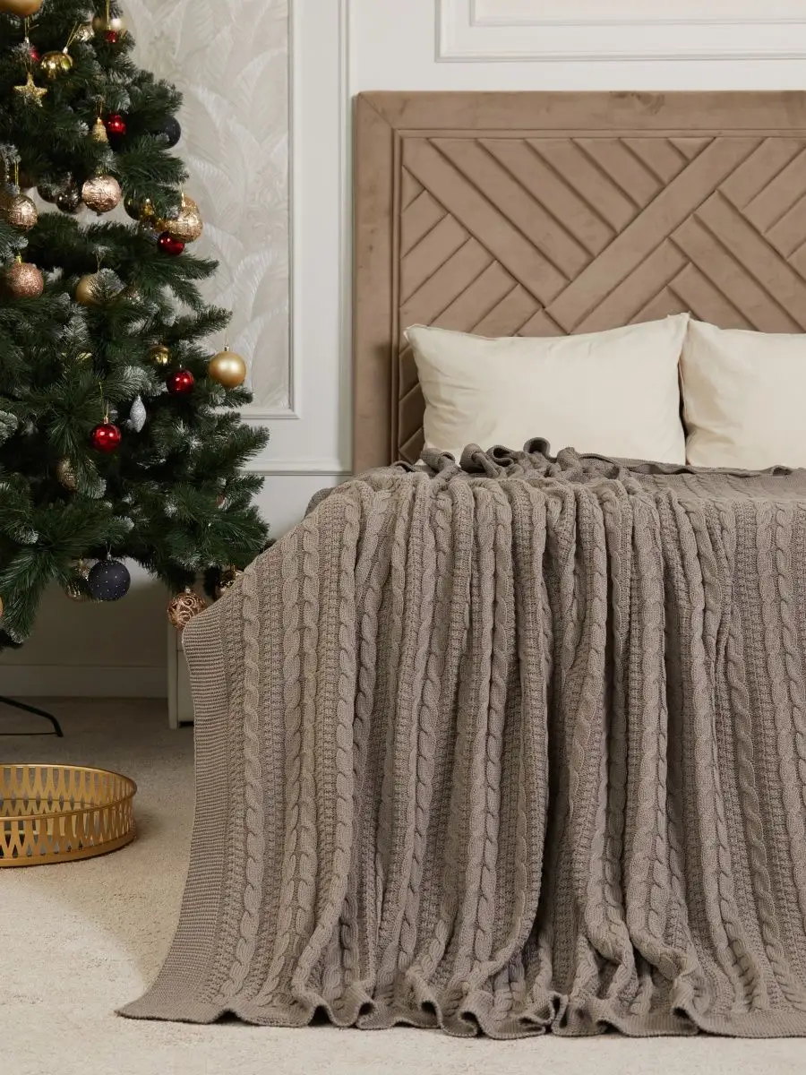 Плед на кровать / Подарочная сумка упаковка / плед вязаный 160х220 см