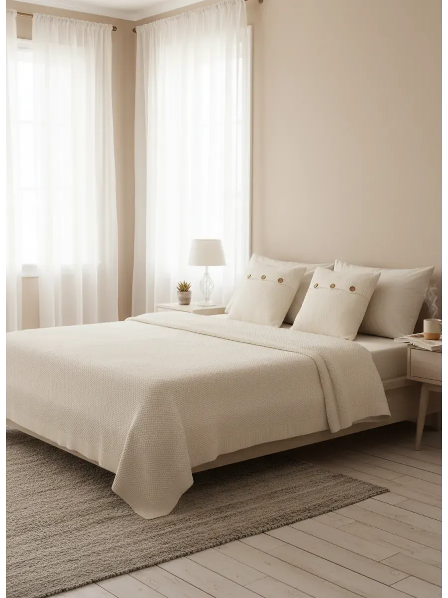 Вязаный плед 180х220 см от Российского бренда PULLTON изготовлен из 100% хлопка, что обеспечивает мягкость и комфорт при использовании. Однотонный дизайн и отсутствие рисунка позволяют пледу легко сочетаться с любым интерьером. Плед размером 180 на 220 см отлично подходит как покрывало для двуспальной кровати, дивана или кресла, как одеяло или как элемент декора. Он достаточно большой, чтобы обеспечить комфортное покрытие, и достаточно тонкий, чтобы не создавать лишнего объема. Хлопковый плед обладает рядом преимуществ, таких как теплоизоляция, воздухопроницаемость, гигроскопичность и экологичность. Он также прост в уходе и долговечен. Плед является универсальным аксессуаром, который можно использовать в различных помещениях и ситуациях. В спальне: как покрывало на кровати или как одеяло для сна. В гостиной: как накидка на диван или кресло, как дополнительный элемент декора или как плед для отдыха на полу. В детской комнате: как одеяло или покрывало на детскую кроватку, как игровой коврик для ребенка. На даче: как покрывало или как одеяло на террасе или в беседке. На пикнике: как одеяло, на котором можно сидеть или лежать, как защита от солнца или от прохлады. Хлопковый плед может стать прекрасным подарком на любой праздник, например, на день рождения, Новый год, Рождество, 8 марта, 23 февраля или просто как знак внимания. Он станет прекрасным выбором для создания уютной новогодней атмосферы в доме! Данная модель пледа доступна в различных размерах, включая 120x220 см, 150X200 см, 160x220 см, 200X220 см и 220X240 см. Вы можете выбрать наиболее подходящий размер в зависимости от ваших предпочтений и целей использования пледа. Обращаем ваше внимание, плед достаточно тяжелый, т.к. выполнен из 100% хлопка и это является преимуществом нашего изделия. Изделие из натурального хлопка не будет таким легким, как синтетические пледы: пушистый, плюшевый, флисовый и другие. !! ВНИМАНИЕ !! Оттенки пледа могут незначительно отличаться от изображений на сайте. Это связано с особенностями поставок пряжи — возможны небольшие вариации цвета в полутонах.