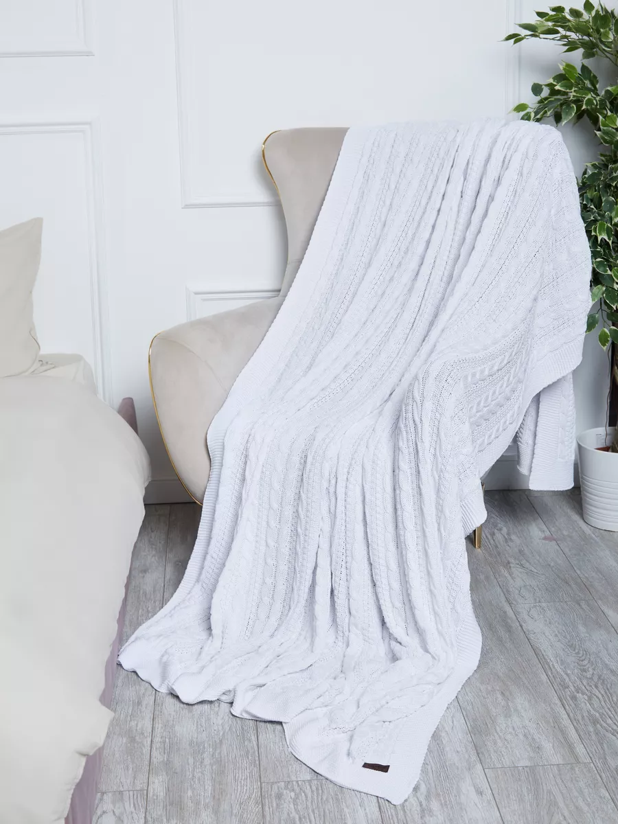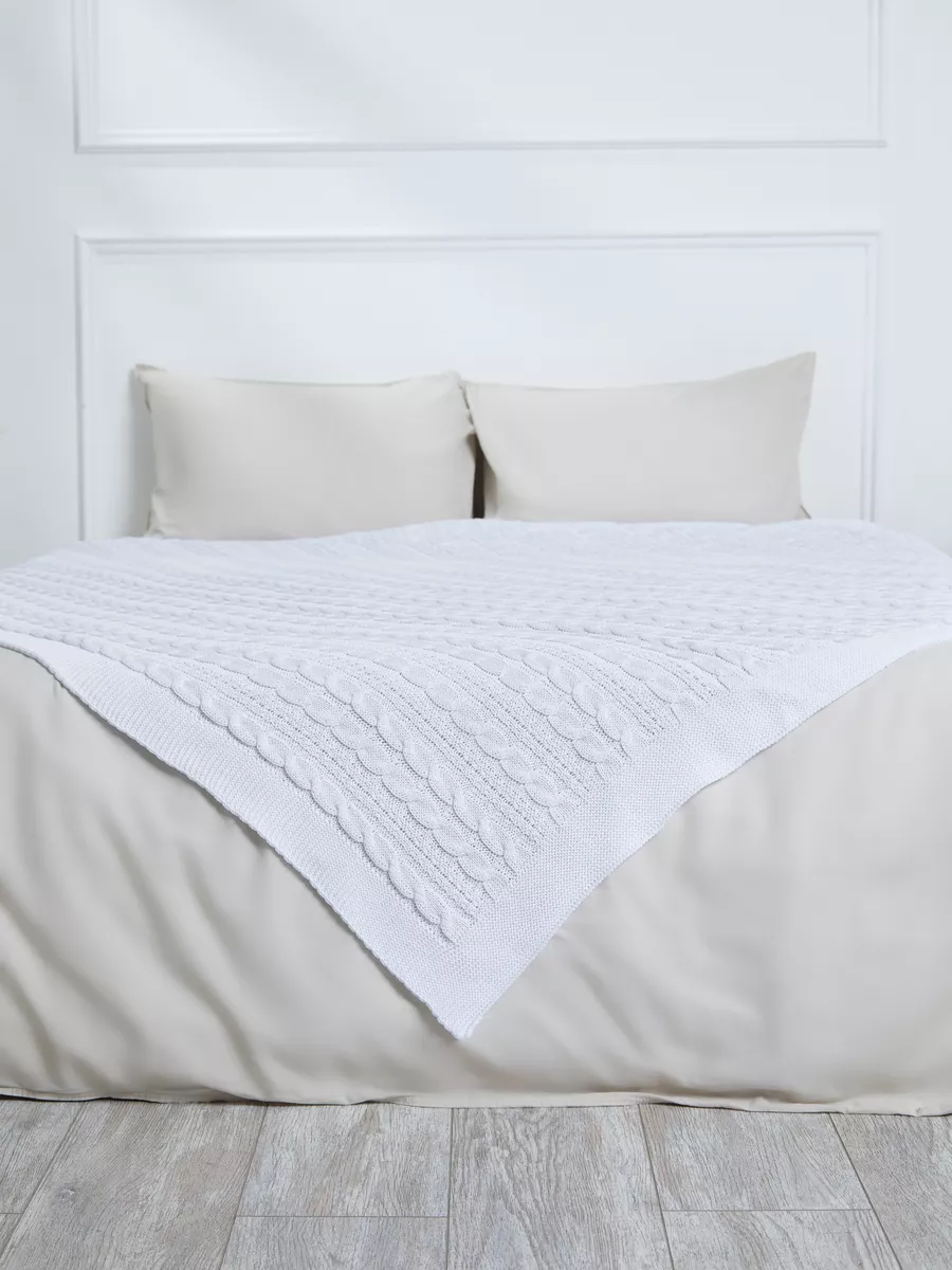 Плед 180x220 на кровать диван покрывало вязаный хлопок 100%