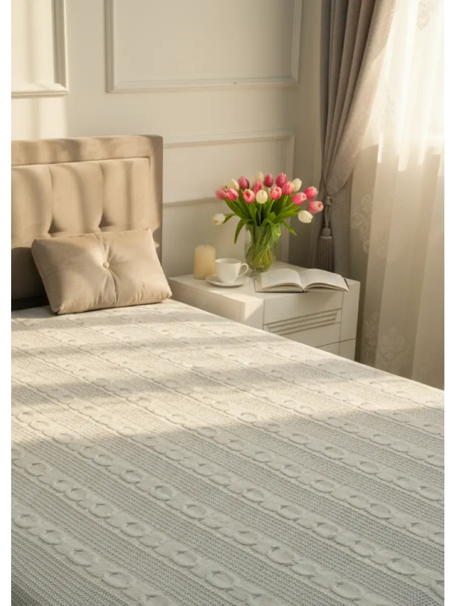 Плед 200х220 на кровать диван покрывало вязаный Хлопок 100 %