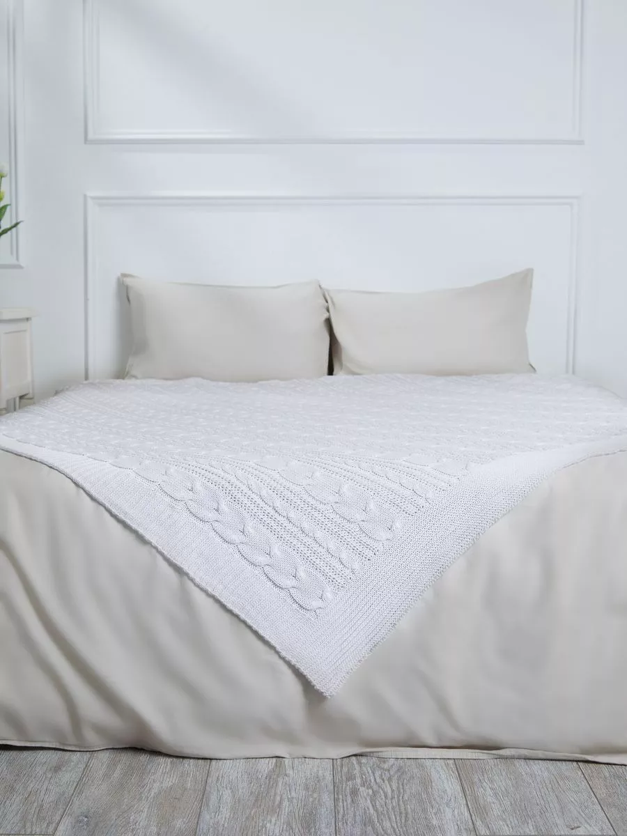 Плед 200х220 на кровать диван покрывало вязаный Хлопок 100 %