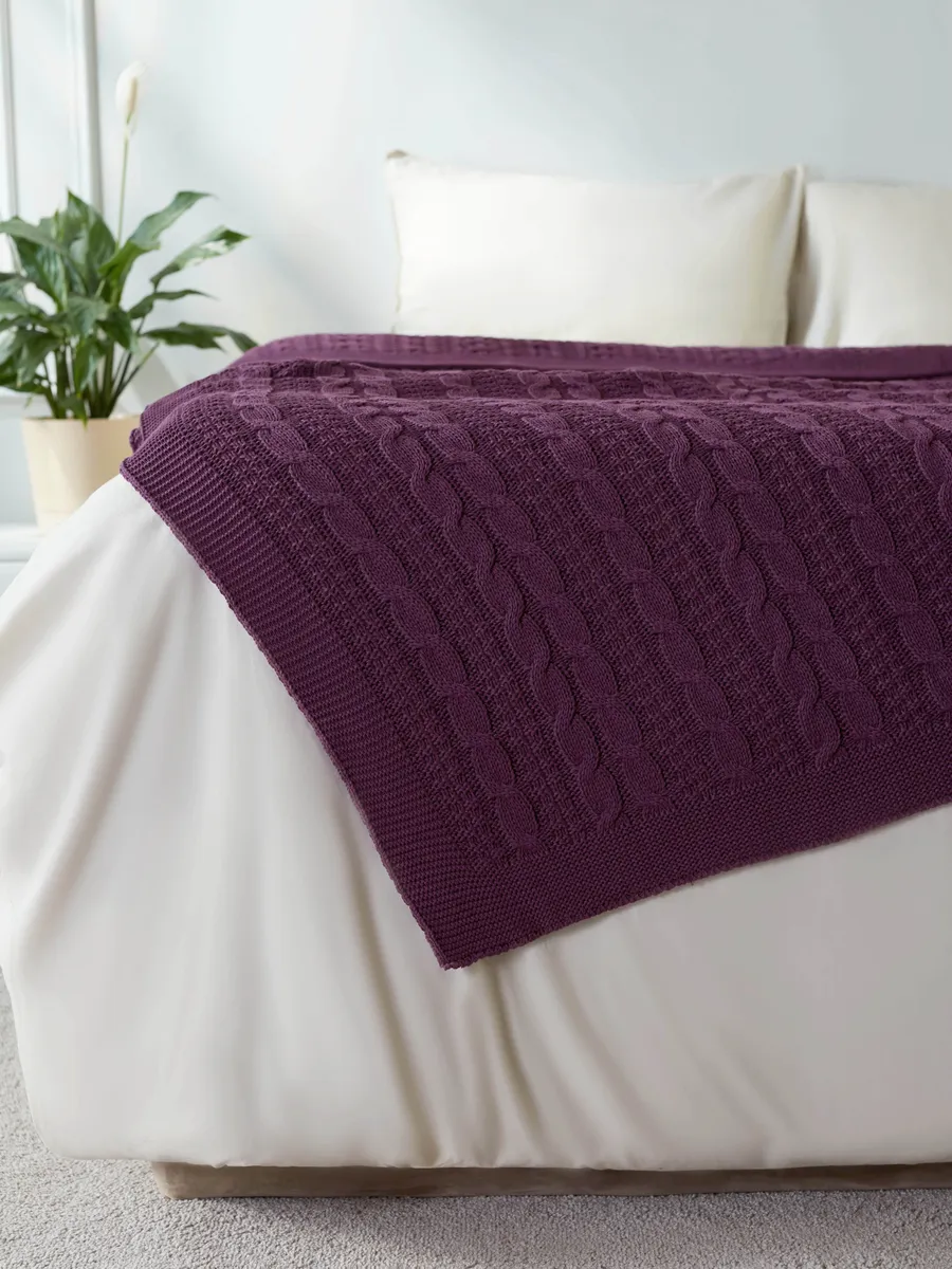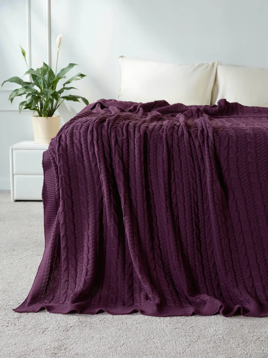 Плед 220x240 на кровать диван покрывало вязаный хлопок 100%