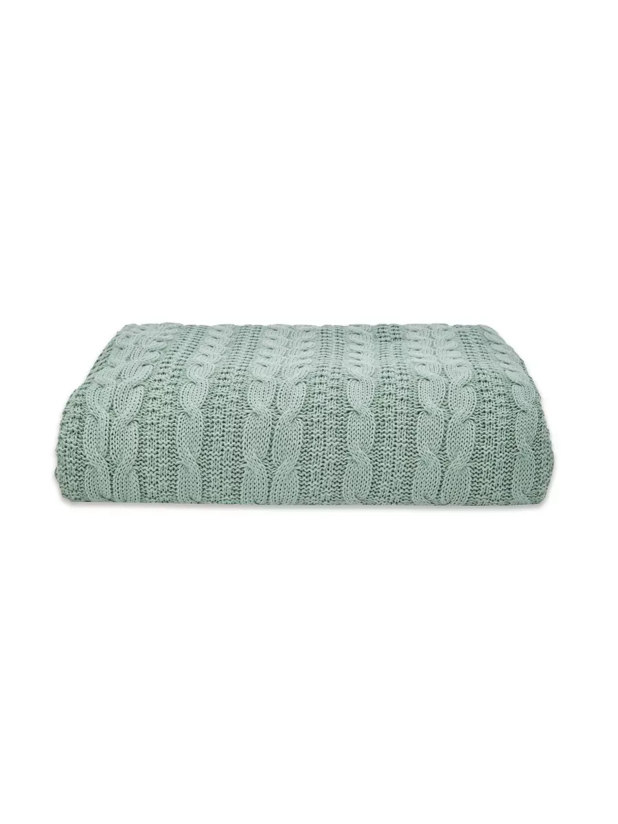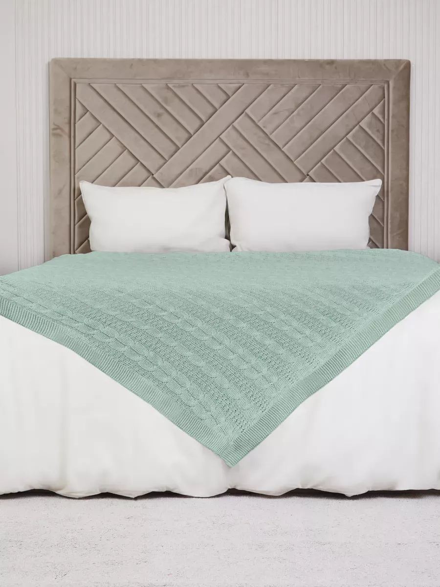 Плед 220x240 на кровать диван покрывало вязаный хлопок 100%