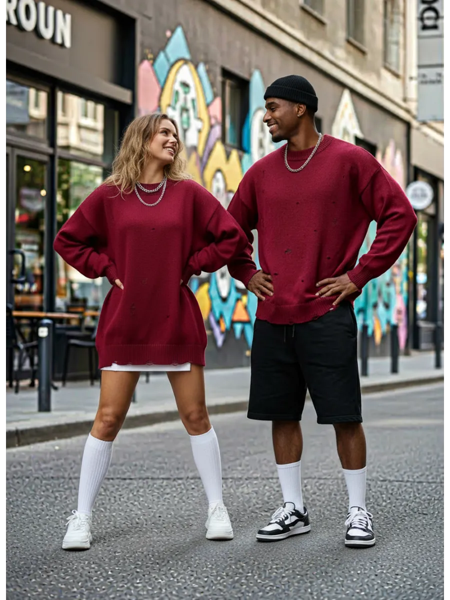 Оверсайз свитер выполнен из 100% хлопка. Это универсальный вязаный свитер, который подойдет как мужчине, так и женщине. Объёмный и теплый вязаный джемпер с дырками будет отличной альтернативой худи. Свободный oversize свитер больших размеров не сковывает. Уютный, теплый объемный джемпер с круглой горловиной, спущенной линией плеча и свободными рукавами. Комфортный, подходит для повседневной носки даже летом, мягкий и не колется, при этом трикотажная кофта с длинным рукавом не мнется, держит форму, сохраняет цвет после стирки. Свитшот подойдет как домашняя одежда. Свитер с дырками неприхотлив в уходе, не деформируется при стирке, не требует глажки. Эти теплые вязаные кофты с длинным рукавом являются прекрасным подарком. Согреют вас в прохладный летний вечер и составят необычный family look для фотосессии. Интересный дизайн и простота ухода сделают джемпер незаменимым элементом вашего гардероба.