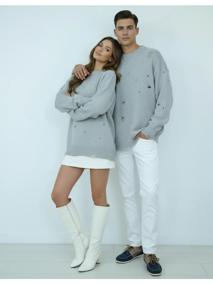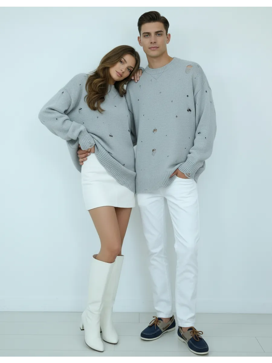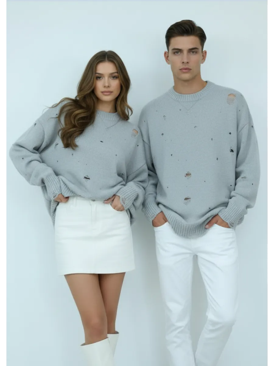 Свитер оверсайз рваный женский и мужской теплая унисекс