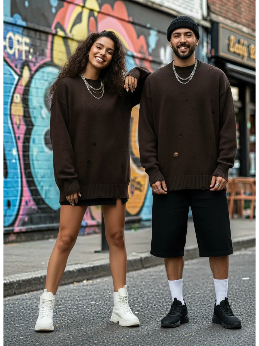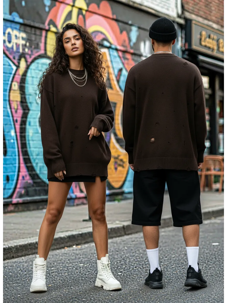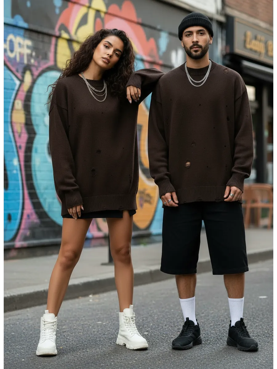 Свитер оверсайз рваный женский и мужской теплая унисекс