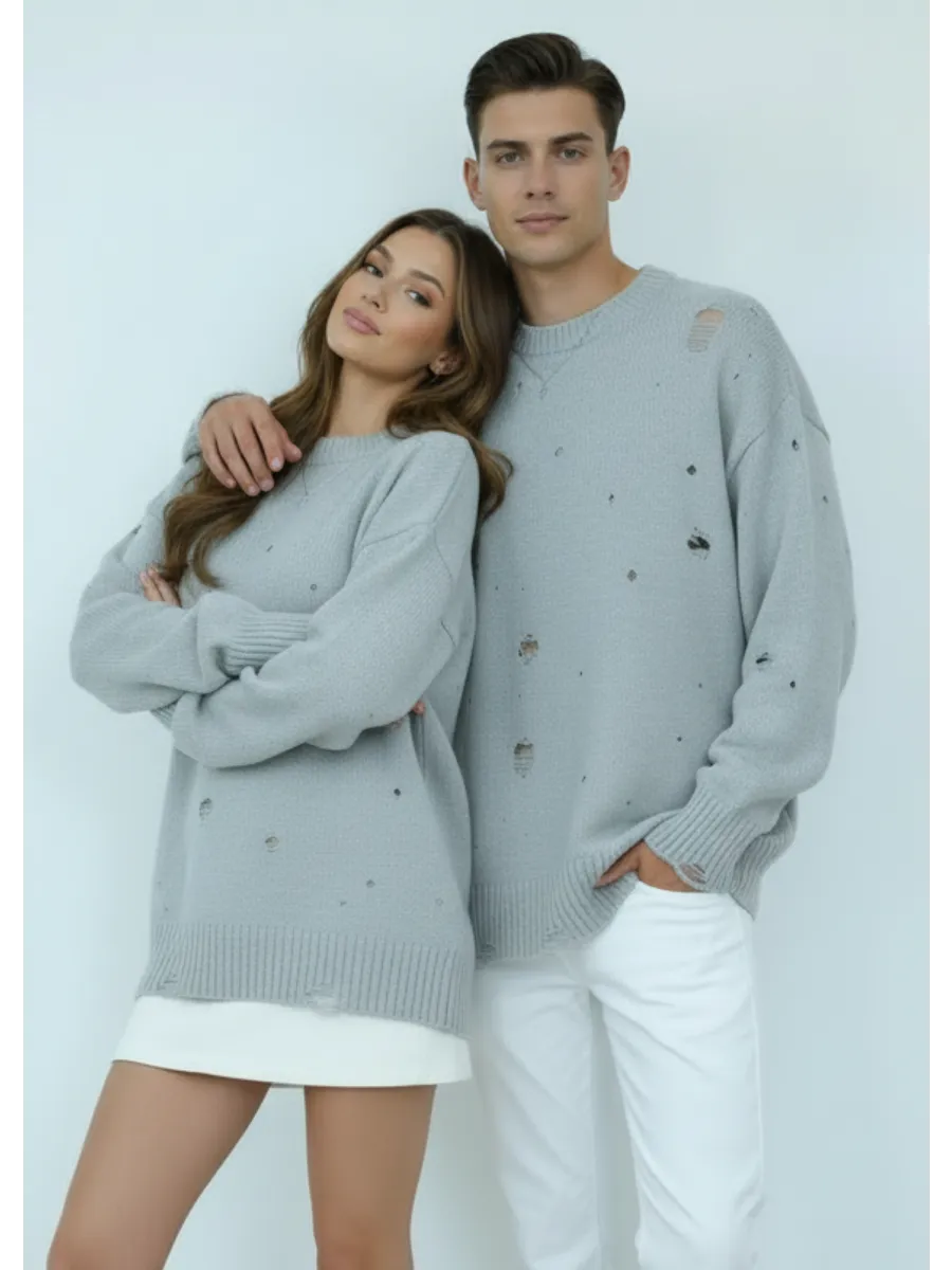 Теплый оверсайз свитер выполнени из 100% хлопка. Это универсальный вязаный свитер, который подойдет как мужчине, так и женщине. Объёмный и теплый вязаный джемпер будет отличной альтернативой худи или балахону. Свободный oversize свитер больших размеров не сковывает. Уютный, теплый объемный джемпер с круглой горловиной, спущенной линией плеча и свободными рукавами. Комфортный, подходит для повседневной носки даже летом, мягкий и не колется, при этом трикотажная кофта с длинным рукавом не мнется, держит форму, сохраняет цвет после стирки. Свитер женский оверсайз офис или на учебу, дома или на прогулке, вам всегда будет тепло и комфортно в нашем теплом рваном оверсайз свитере. Свитшот подойдет как домашняя одежда для женщин. Свитер неприхотлив в уходе, не деформируется при стирке, не требует глажки. Эти теплые вязаные кофты с длинным рукавом являются прекрасным подарком на день рождения, день святого валентина 14 февраля, день защитника отечества 23 февраля, 8 марта. Согреют вас в прохладный летний вечер и составят необычный family look для фотосессии. Интересный дизайн и простота ухода сделают джемпер незаменимым элементом вашего гардероба.