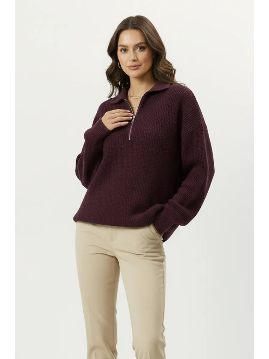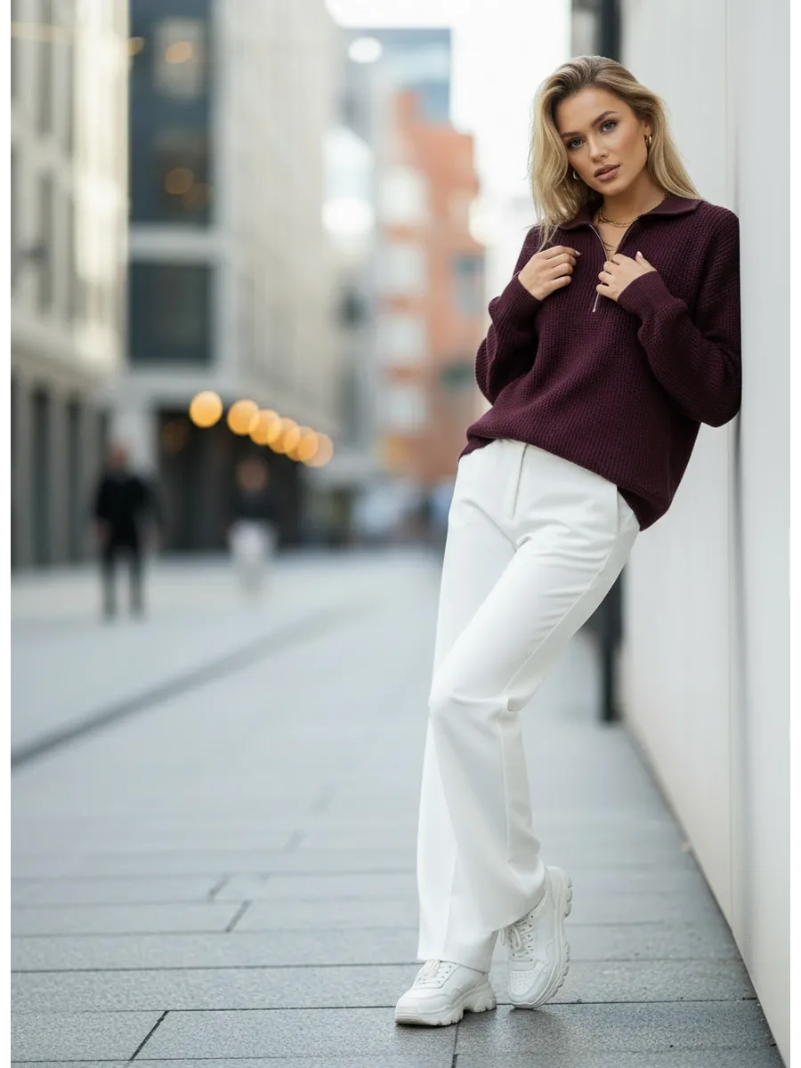 Свитер оверсайз теплый вязаный на молнии с воротником