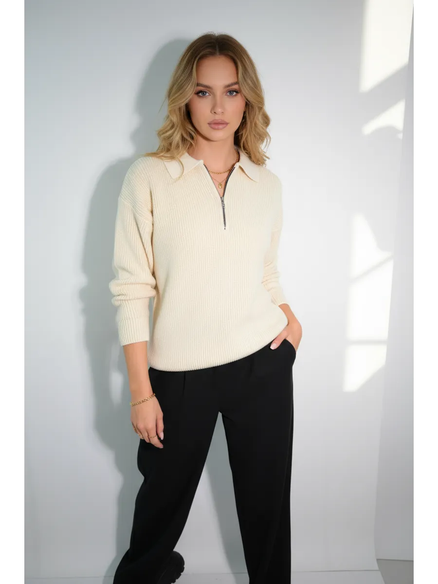Свитер оверсайз теплый вязаный на молнии с воротником