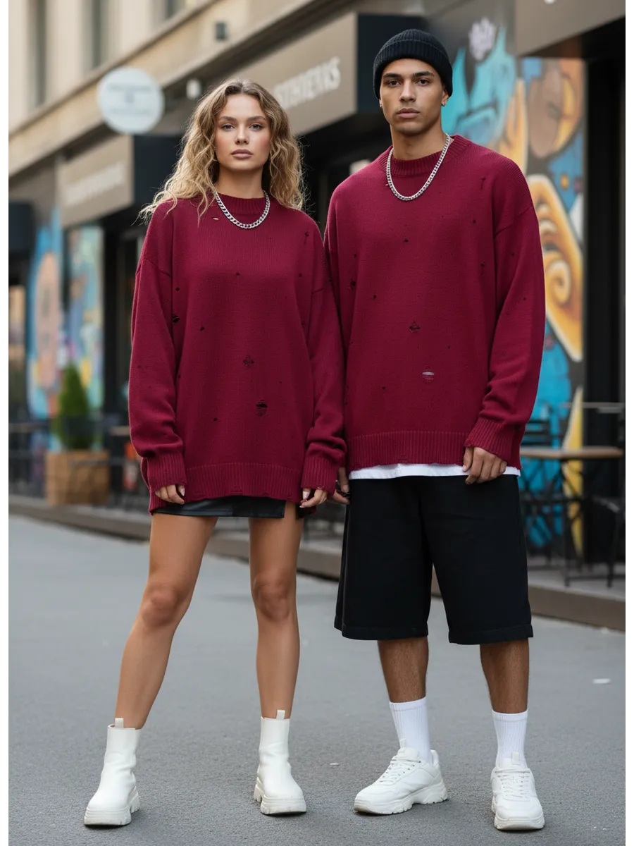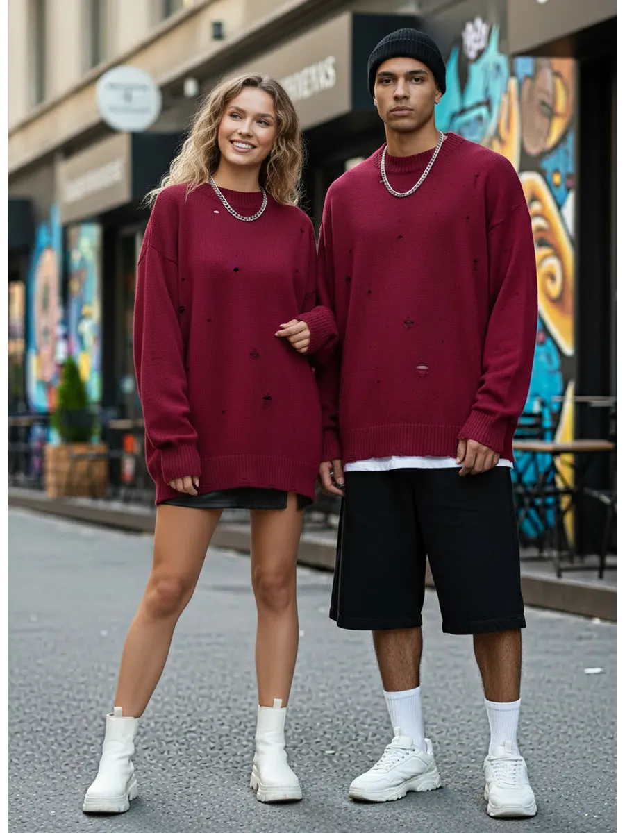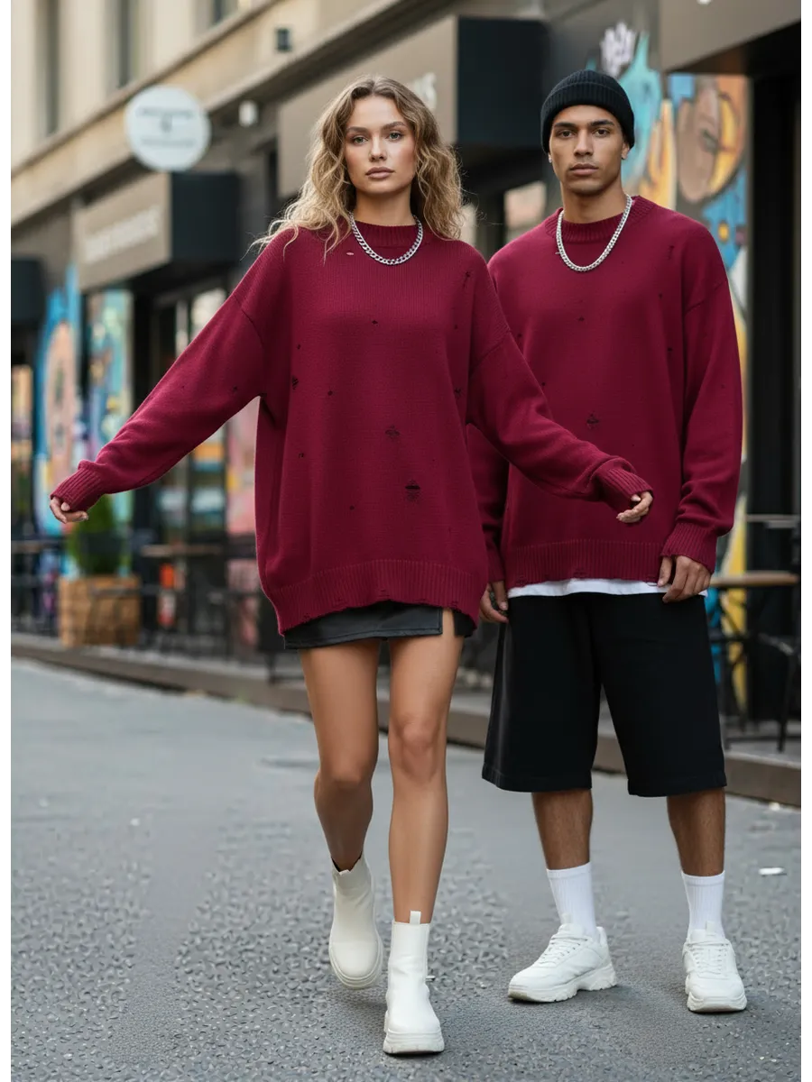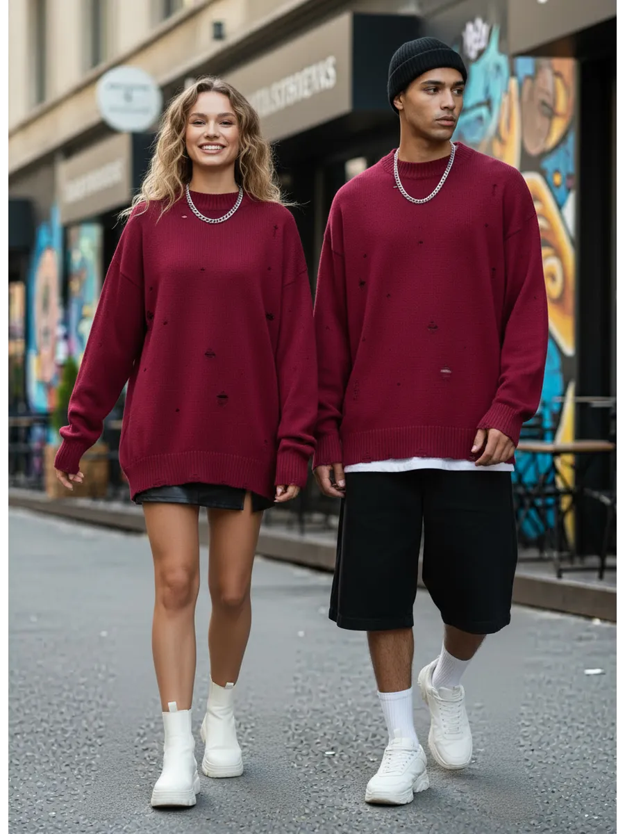 Свитер оверсайз рваный женский и мужской теплая унисекс