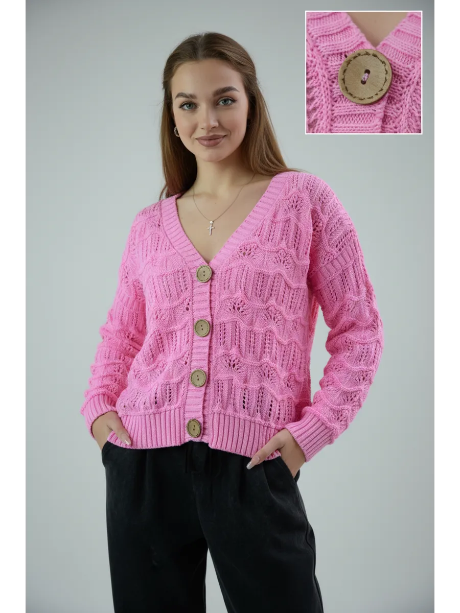 Кардиган женский кроше укороченный оверсайз