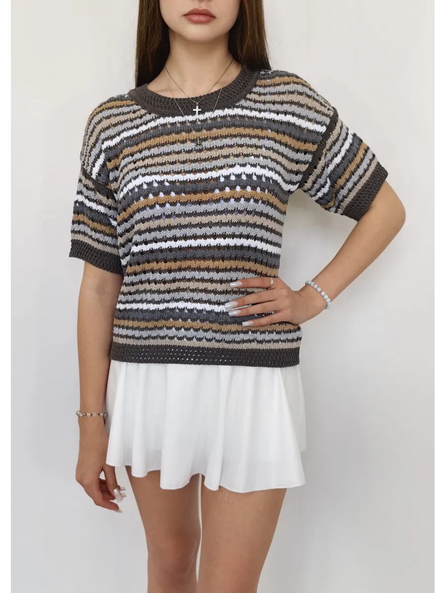 Наша вязаная модель отличается оригинальным принтом, который привлекает внимание. Ажурная текстура и детали в виде дырок создают игривый и современный образ. Свитер, выполненный в технике паутинка крупной вязки, отлично смотрится как в сочетании с юбкой, так и с джинсами. Полосатый узор добавляет изюминку, а оверсайз крой делает эту вещь подходящей для девушек-подростков, что делает её универсальной для любого стиля.