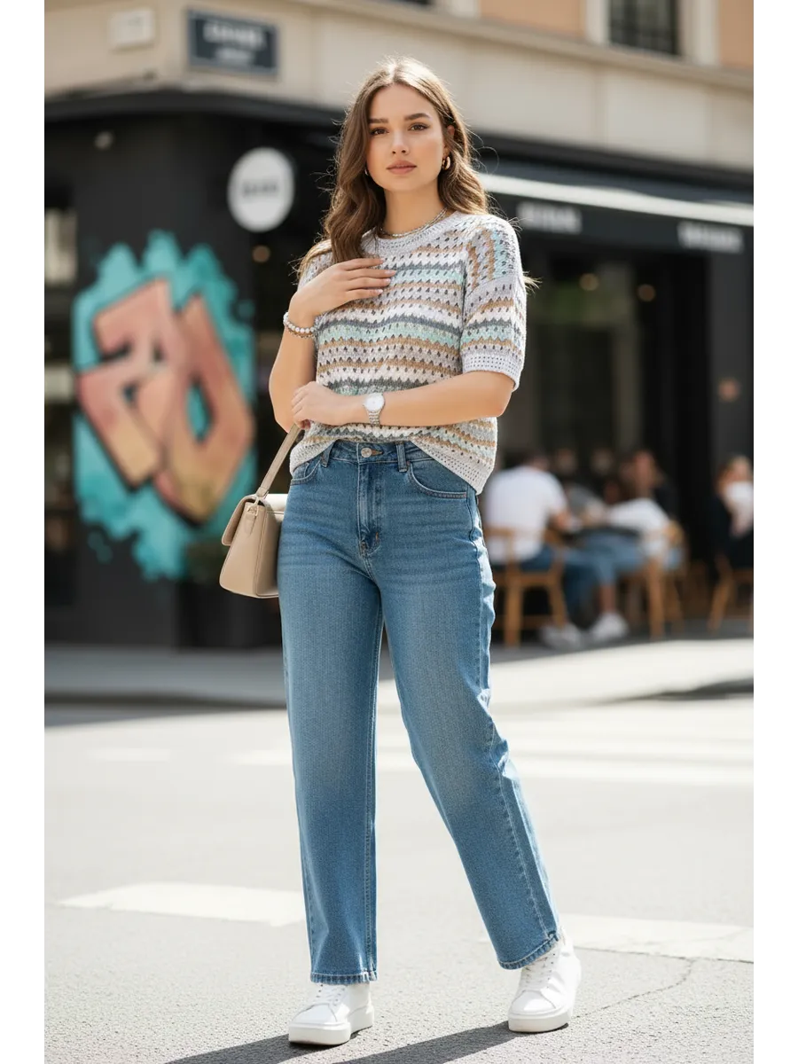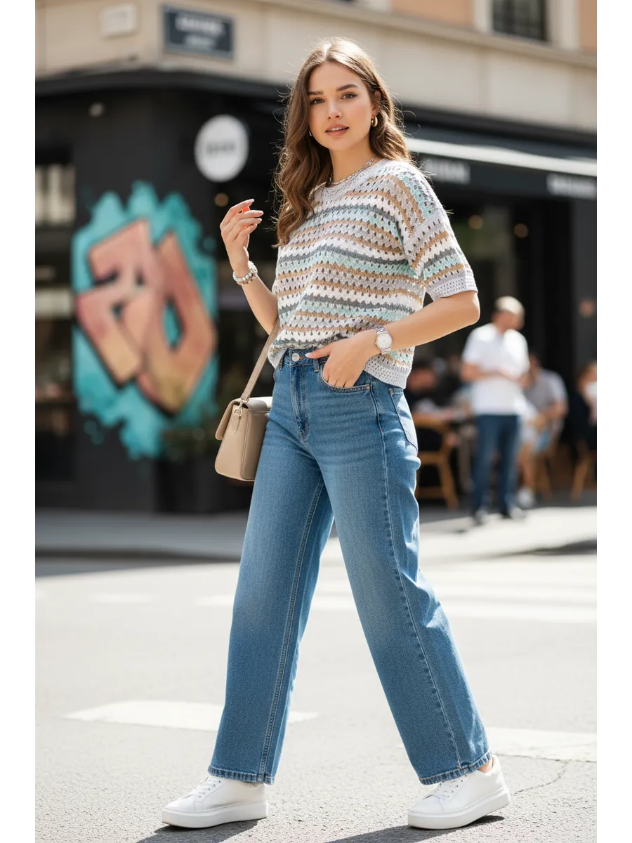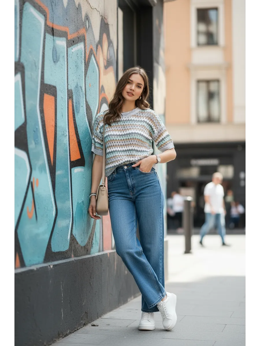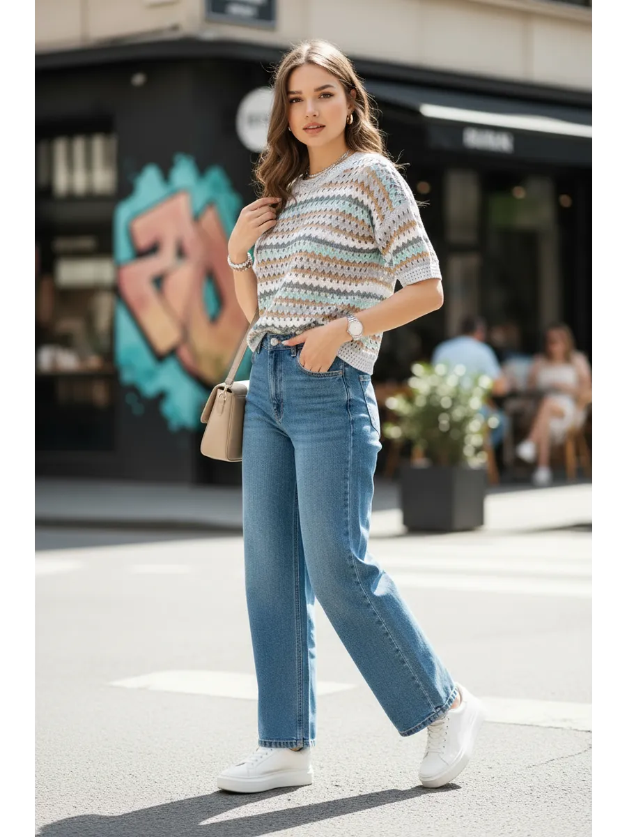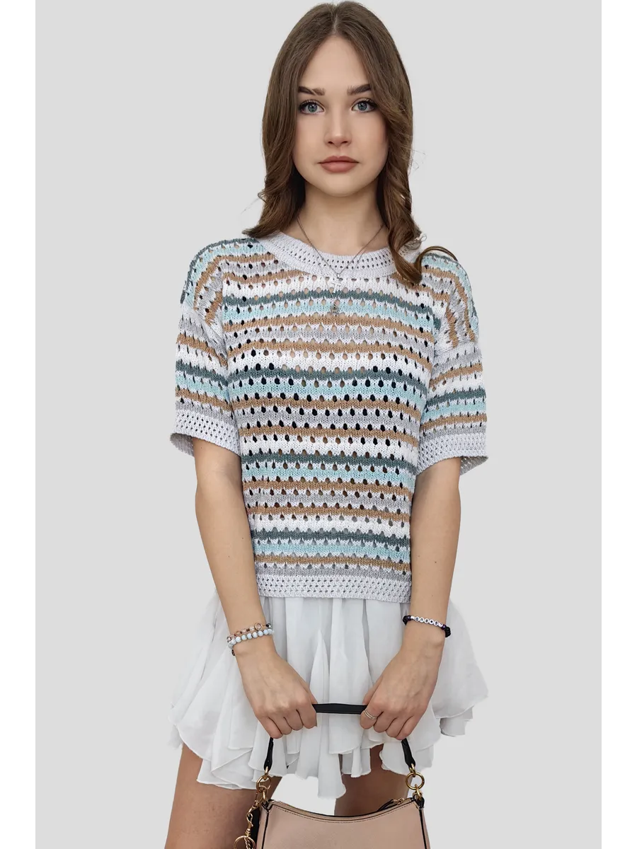 Наша вязаная модель отличается оригинальным принтом, который привлекает внимание. Ажурная текстура и детали в виде дырок создают игривый и современный образ. Свитер, выполненный в технике паутинка крупной вязки, отлично смотрится как в сочетании с юбкой, так и с джинсами. Полосатый узор добавляет изюминку, а оверсайз крой делает эту вещь подходящей для девушек-подростков, что делает её универсальной для любого стиля.