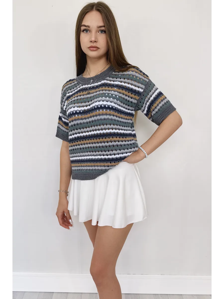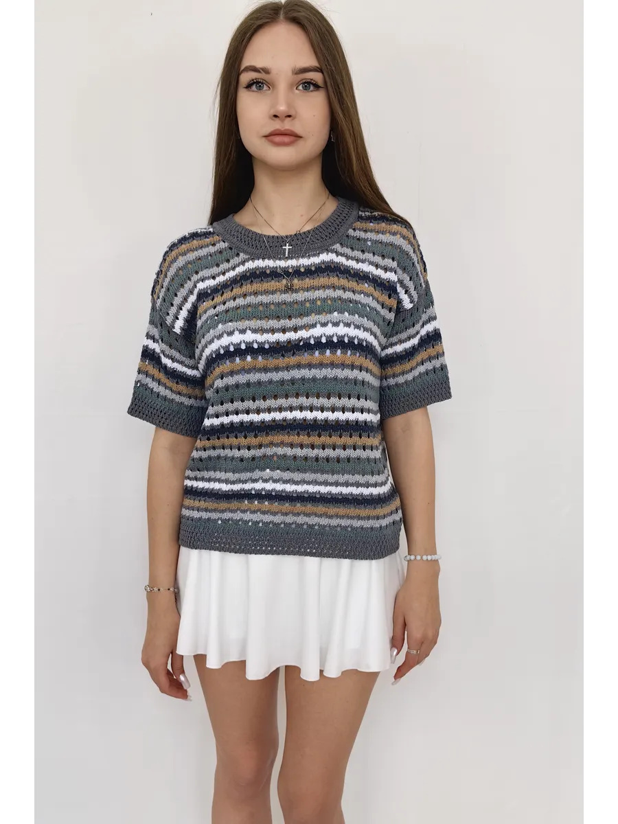 Наша вязаная модель отличается оригинальным принтом, который привлекает внимание. Ажурная текстура и детали в виде дырок создают игривый и современный образ. Свитер, выполненный в технике паутинка крупной вязки, отлично смотрится как в сочетании с юбкой, так и с джинсами. Полосатый узор добавляет изюминку, а оверсайз крой делает эту вещь подходящей для девушек-подростков, что делает её универсальной для любого стиля.