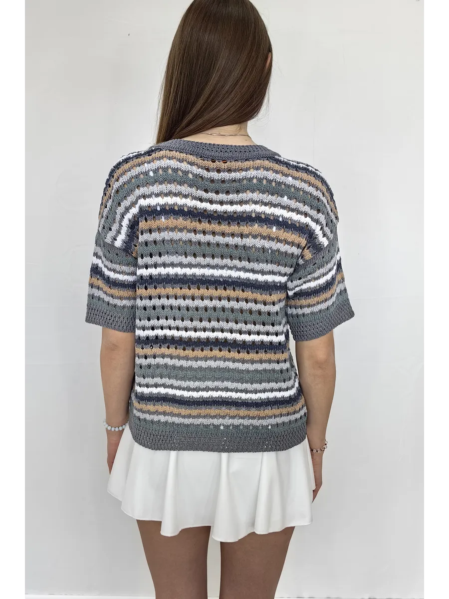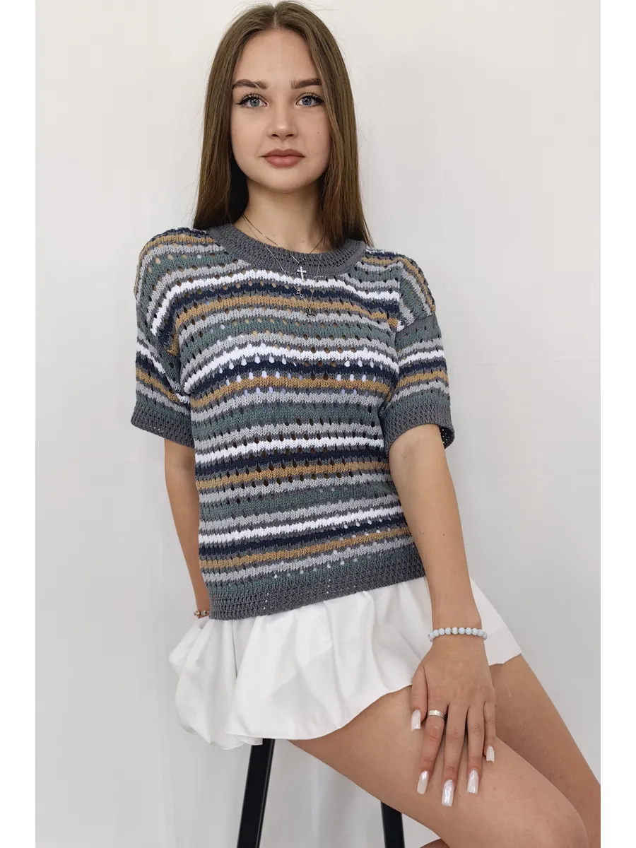 короткий рукав / кофта женская / крупная вязка