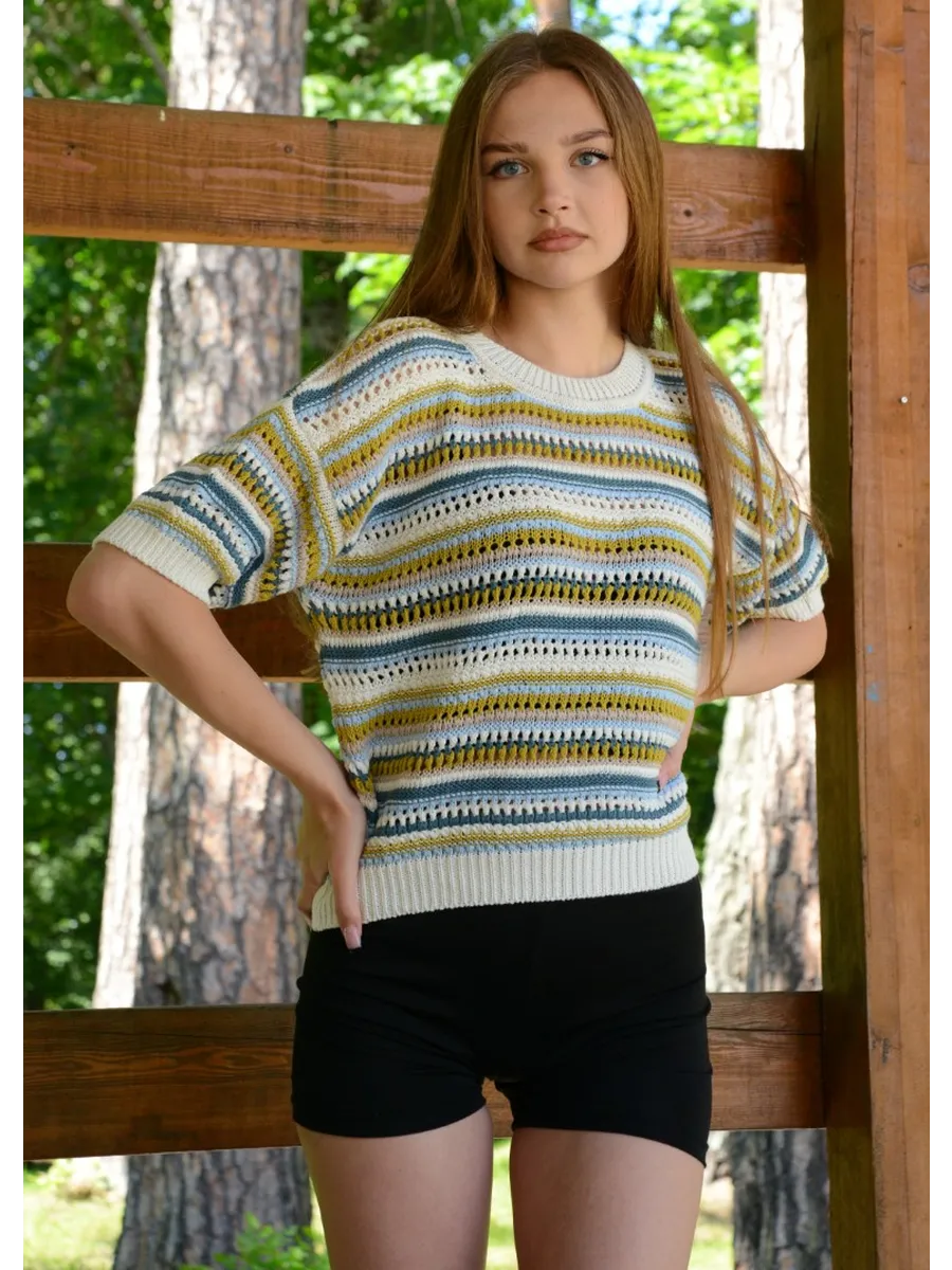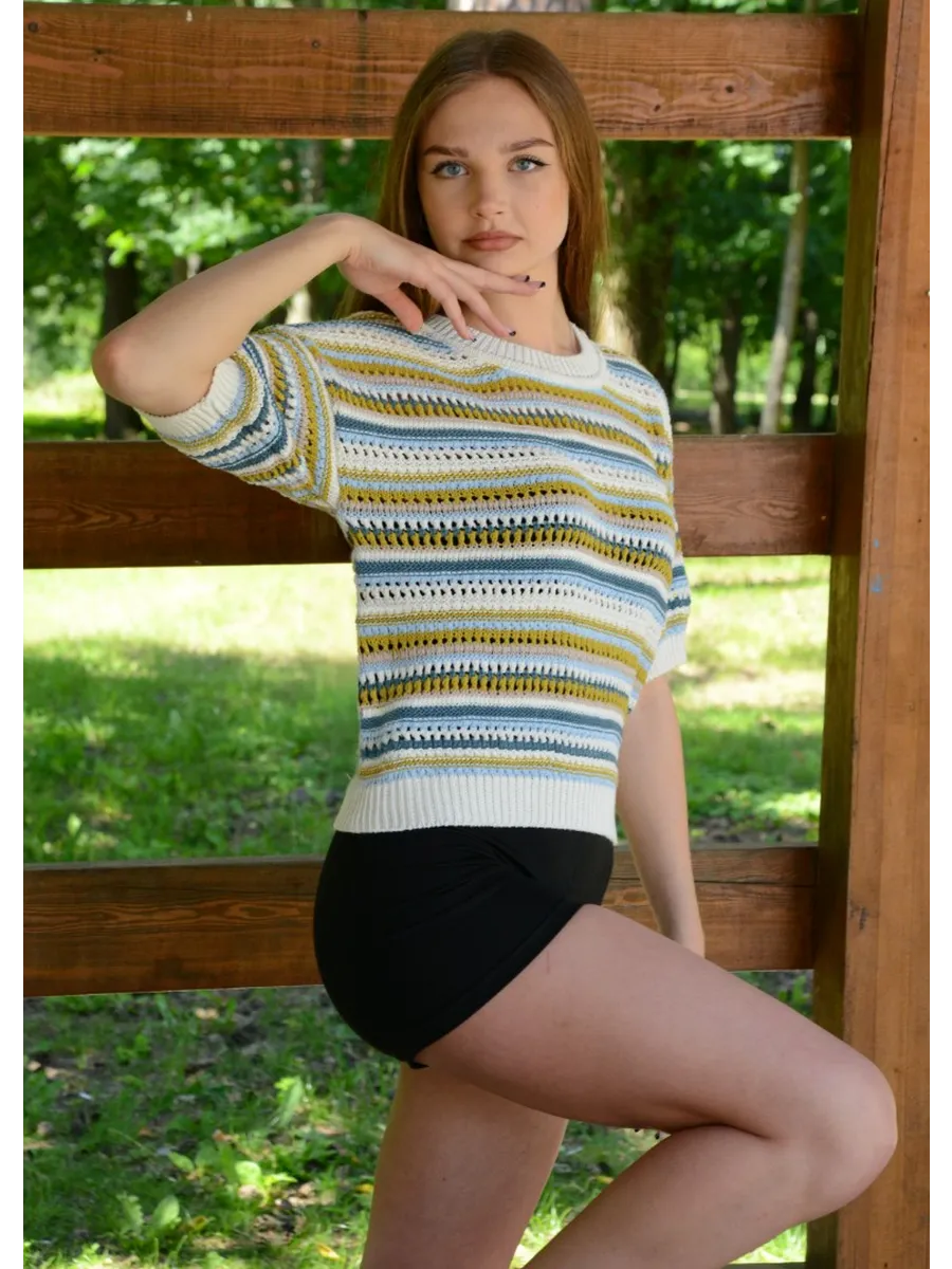 Наша вязаная модель отличается оригинальным принтом, который привлекает внимание. Ажурная текстура и детали в виде дырок создают игривый и современный образ. Свитер, выполненный в технике паутинка крупной вязки, отлично смотрится как в сочетании с юбкой, так и с джинсами. Полосатый узор добавляет изюминку, а оверсайз крой делает эту вещь подходящей для девушек-подростков, что делает её универсальной для любого стиля.