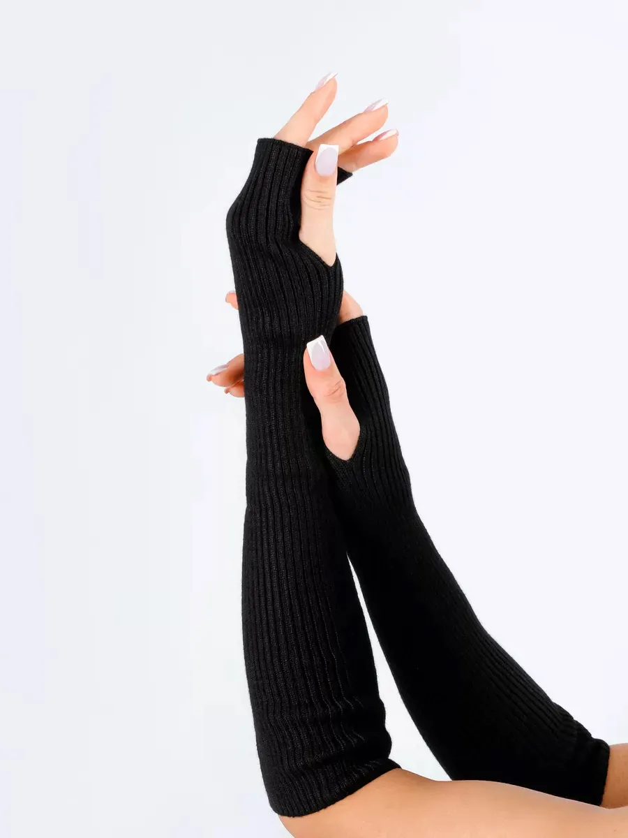 Митенки длинные темно-серый перчатки без пальцев гетры