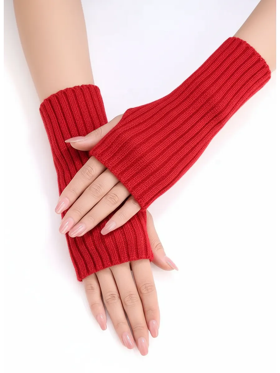 Митенки красный теплые перчатки без пальцев y2k