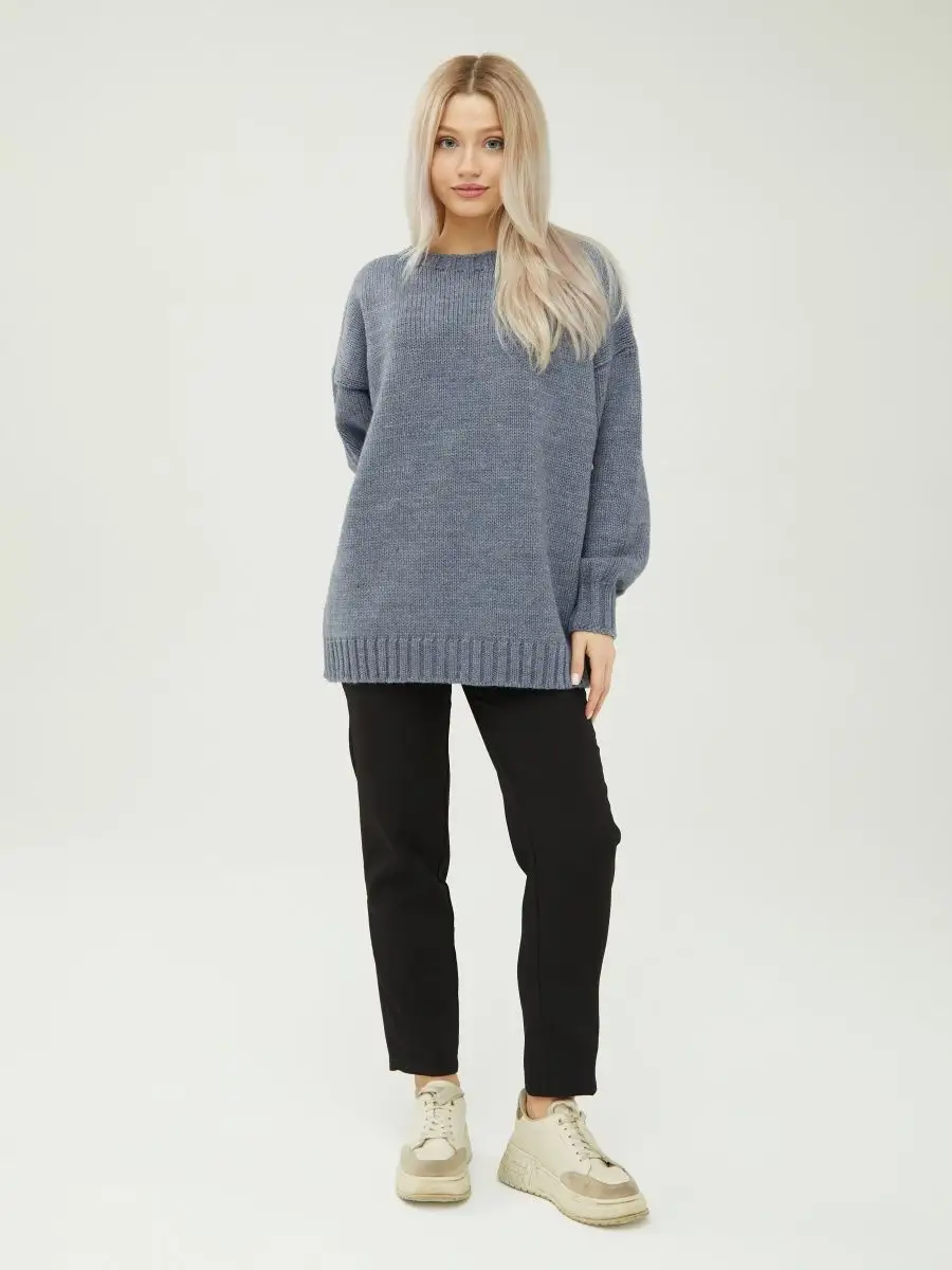 Удлиненный вязаный свитер крупной вязки с округлая горловина создан для зимних радужных вечеров с друзьями и долгих прогулок в осенний сезон. Объемный джемпер с горлом выглядит расслабленно, стильно, создавая комфорт и уют. Широкий крой, большой размер, свободный фасон оверсайз подходит для женщин любого возраста и комплекции, нравится подросткам и беременным. Женский шерстяной пуловер сохраняет мягкость. За счет акрила не мнется, сохраняет цвет и форму после многочисленных стирок. Длинный базовый свитшот украсит повседневный гардероб для женщин и девочек. Модный трикотажный джемпер заменит толстовку на молнии для спортивного образа с рваными джинсами и яркими леггинсами. Свободный оверсайз свитер больших размеров не сковывает, заменит худи подросткам. Уютный, теплый объемный джемпер с круглым горлом комфортный для повседневной носки даже летом, мягкий, при этом трикотажная кофта с длинным рукавом не мнется, держит форму, сохраняет цвет. Удлиненная модель смотрится как вязаное платье для невысоких и, как укороченный пуловер для высоких, подойдет беременным. Добавьте юбку в школьном стиле, платье с леопардовым принтом или короткие кожаные шорты. Заправьте в цветные брюки, накиньте пиджак на пуговицах и ловите восхищенные взгляды. Укутайтесь в мягкий свитер, как в любимый кардиган, или подарите в подарок сестре, маме, подруге. И пусть зима будет уютной и теплой. 1. модель рост 173см, 110-85-104, 2. модель рост - 166см, 89-61-92. На двух моделях одинаковый размер 42-46. Топик на модели Арт 431805597 шорты Арт 398920272