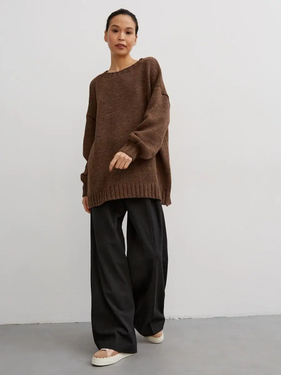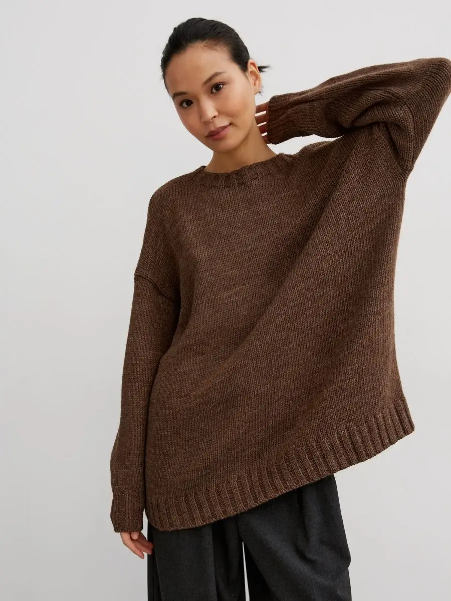 Удлиненный вязаный свитер крупной вязки с округлая горловина создан для зимних радужных вечеров с друзьями и долгих прогулок в осенний сезон. Объемный джемпер с горлом выглядит расслабленно, стильно, создавая комфорт и уют. Широкий крой, большой размер, свободный фасон оверсайз подходит для женщин любого возраста и комплекции, нравится подросткам и беременным. Женский шерстяной пуловер сохраняет мягкость. За счет акрила не мнется, сохраняет цвет и форму после многочисленных стирок. Длинный базовый свитшот украсит повседневный гардероб для женщин и девочек. Модный трикотажный джемпер заменит толстовку на молнии для спортивного образа с рваными джинсами и яркими леггинсами. Свободный оверсайз свитер больших размеров не сковывает, заменит худи подросткам. Уютный, теплый объемный джемпер с круглым горлом комфортный для повседневной носки даже летом, мягкий, при этом трикотажная кофта с длинным рукавом не мнется, держит форму, сохраняет цвет. Удлиненная модель смотрится как вязаное платье для невысоких и, как укороченный пуловер для высоких, подойдет беременным. Добавьте юбку в школьном стиле, платье с леопардовым принтом или короткие кожаные шорты. Заправьте в цветные брюки, накиньте пиджак на пуговицах и ловите восхищенные взгляды. Укутайтесь в мягкий свитер, как в любимый кардиган, или подарите в подарок сестре, маме, подруге. И пусть зима будет уютной и теплой. 1. модель рост 173см, 110-85-104, 2. модель рост - 166см, 89-61-92. На двух моделях одинаковый размер 42-46. Топик на модели Арт 431805597 шорты Арт 398920272