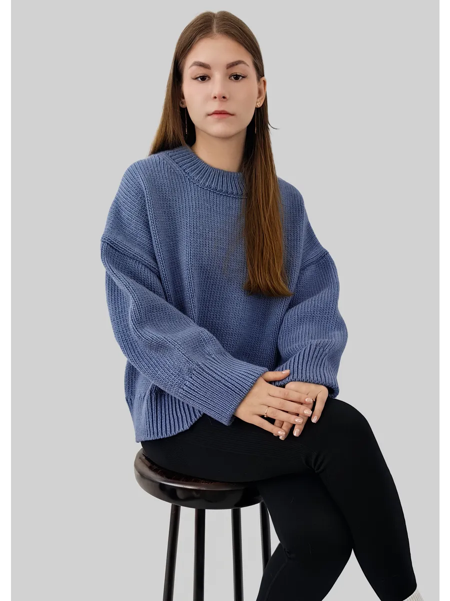Удлиненный вязаный толстый свитер крупной вязки создан для зимних радужных вечеров с друзьями и долгих прогулок в осенний сезон. Объемный джемпер с горлом выглядит расслабленно, стильно, создавая комфорт и уют. Широкий крой, большой размер, свободный фасон оверсайз подходит для женщин любого возраста и комплекции, нравится подросткам и беременным. Женский шерстяной пуловер сохраняет мягкость. За счет акрила не мнется, сохраняет цвет и форму после многочисленных стирок. Длинный базовый свитшот украсит повседневный гардероб для женщин и девочек. Модный трикотажный джемпер заменит толстовку на молнии для спортивного образа с рваными джинсами и яркими леггинсами. Свободный оверсайз свитер больших размеров не сковывает, заменит худи подросткам. Уютный, теплый объемный джемпер с круглым горлом комфортный для повседневной носки, мягкий, и не колется, как шерстяной, при этом трикотажная кофта с длинным рукавом не мнется, держит форму, сохраняет цвет. Удлиненная модель смотрится как вязаное платье для невысоких и, как укороченный пуловер для высоких, подойдет беременным. Добавьте юбку в школьном стиле, платье с леопардовым принтом или короткие кожаные шорты. Заправьте в цветные брюки, накиньте пиджак на пуговицах и ловите восхищенные взгляды. Укутайтесь в мягкий свитер, как в любимый кардиган, или подарите в подарок сестре, маме, подруге. И пусть зима будет уютной и теплой. Топик на модели Арт 431805597 шорты Арт 398920272 .