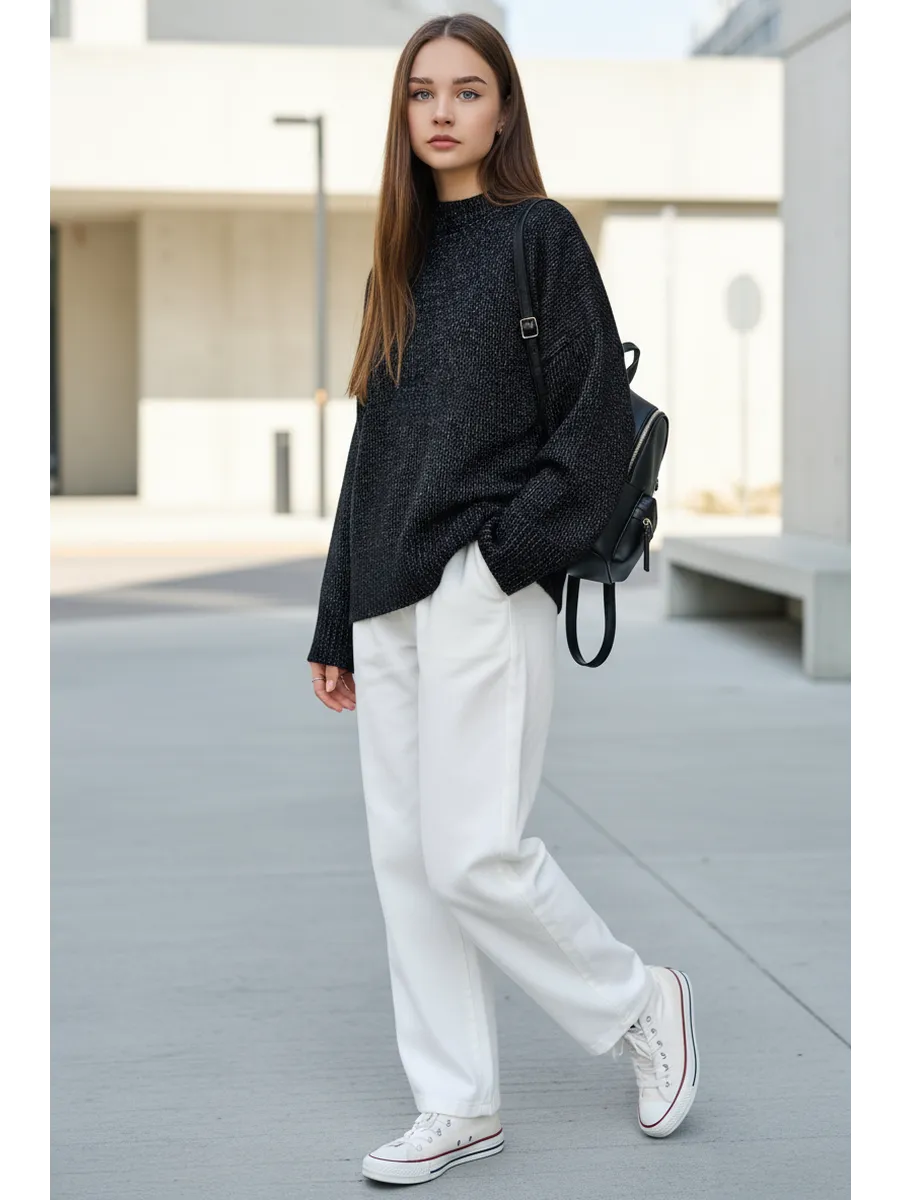 Удлиненный вязаный толстый свитер крупной вязки создан для зимних радужных вечеров с друзьями и долгих прогулок в осенний сезон. Объемный джемпер с горлом выглядит расслабленно, стильно, создавая комфорт и уют. Широкий крой, большой размер, свободный фасон оверсайз подходит для женщин любого возраста и комплекции, нравится подросткам и беременным. Женский шерстяной пуловер сохраняет мягкость. За счет акрила не мнется, сохраняет цвет и форму после многочисленных стирок. Длинный базовый свитшот украсит повседневный гардероб для женщин и девочек. Модный трикотажный джемпер заменит толстовку на молнии для спортивного образа с рваными джинсами и яркими леггинсами. Свободный оверсайз свитер больших размеров не сковывает, заменит худи подросткам. Уютный, теплый объемный джемпер с круглым горлом комфортный для повседневной носки, мягкий, и не колется, как шерстяной, при этом трикотажная кофта с длинным рукавом не мнется, держит форму, сохраняет цвет. Удлиненная модель смотрится как вязаное платье для невысоких и, как укороченный пуловер для высоких, подойдет беременным. Добавьте юбку в школьном стиле, платье с леопардовым принтом или короткие кожаные шорты. Заправьте в цветные брюки, накиньте пиджак на пуговицах и ловите восхищенные взгляды. Укутайтесь в мягкий свитер, как в любимый кардиган, или подарите в подарок сестре, маме, подруге. И пусть зима будет уютной и теплой. Топик на модели Арт 431805597 шорты Арт 398920272 .