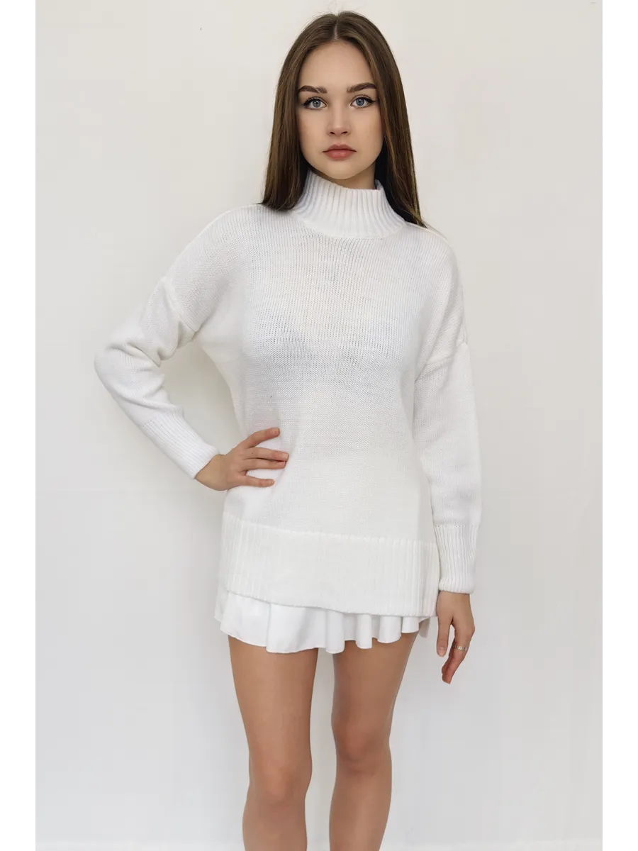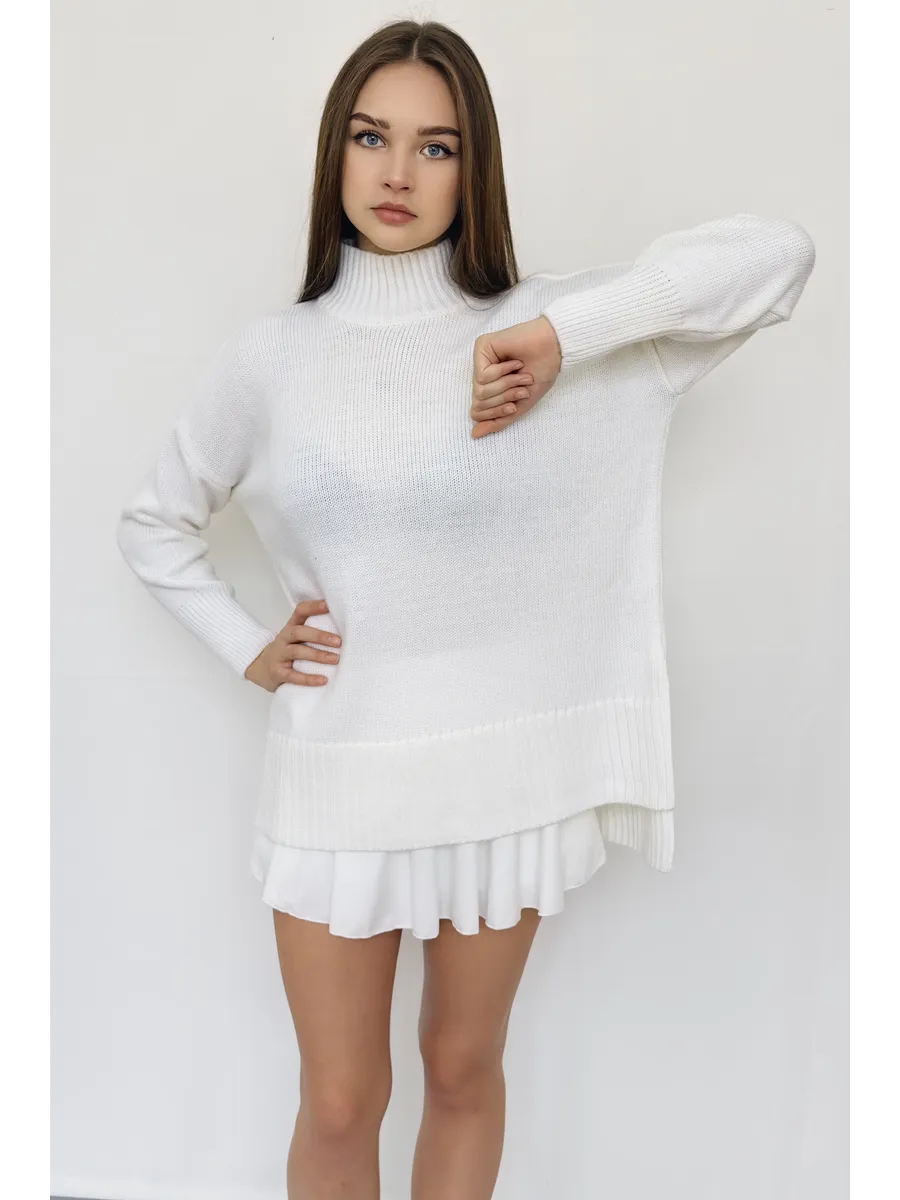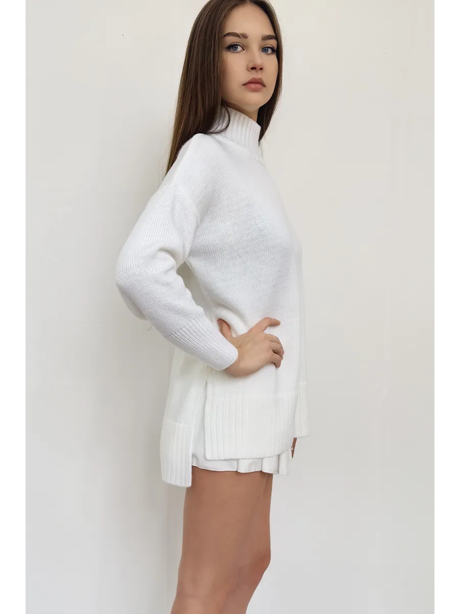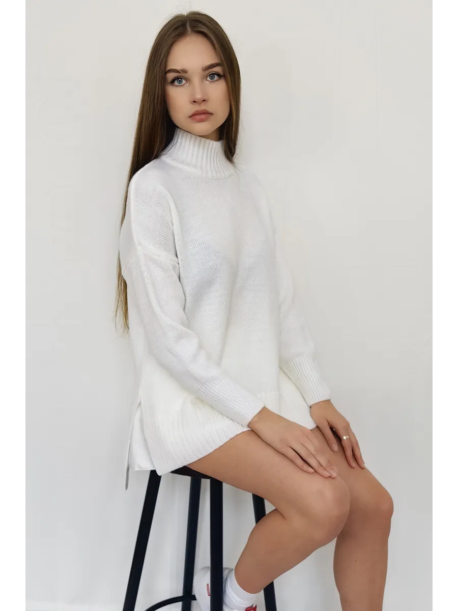 Удлиненный вязаный толстый свитер крупной вязки создан для зимних радужных вечеров с друзьями и долгих прогулок в осенний сезон. Объемный джемпер с горлом выглядит расслабленно, стильно, создавая комфорт и уют. Широкий крой, большой размер, свободный фасон оверсайз подходит для женщин любого возраста и комплекции, нравится подросткам и беременным. Женский шерстяной пуловер сохраняет мягкость. За счет акрила не мнется, сохраняет цвет и форму после многочисленных стирок. Длинный базовый свитшот украсит повседневный гардероб для женщин и девочек. Модный трикотажный джемпер заменит толстовку на молнии для спортивного образа с рваными джинсами и яркими леггинсами. Свободный оверсайз свитер больших размеров не сковывает, заменит худи подросткам. Уютный, теплый объемный джемпер с круглым горлом комфортный для повседневной носки, мягкий, и не колется, как шерстяной, при этом трикотажная кофта с длинным рукавом не мнется, держит форму, сохраняет цвет. Удлиненная модель смотрится как вязаное платье для невысоких и, как укороченный пуловер для высоких, подойдет беременным. Добавьте юбку в школьном стиле, платье с леопардовым принтом или короткие кожаные шорты. Заправьте в цветные брюки, накиньте пиджак на пуговицах и ловите восхищенные взгляды. Укутайтесь в мягкий свитер, как в любимый кардиган, или подарите в подарок сестре, маме, подруге. И пусть зима будет уютной и теплой. Топик на модели Арт 431805597 шорты Арт 398920272 .