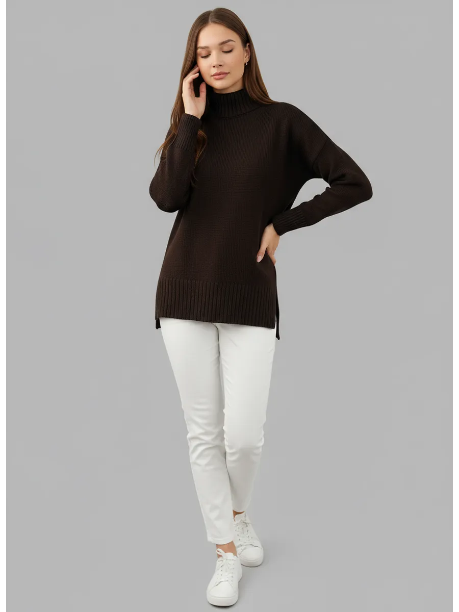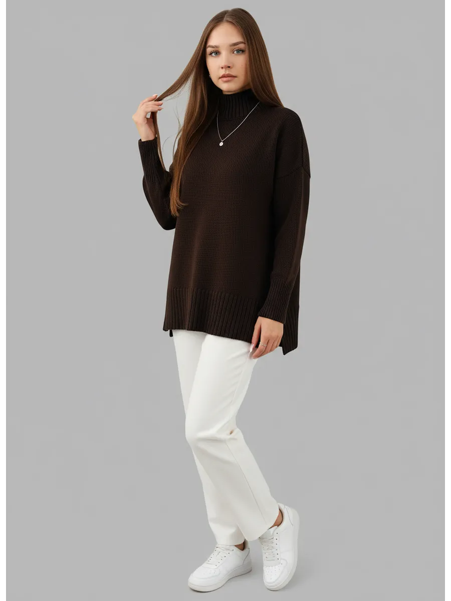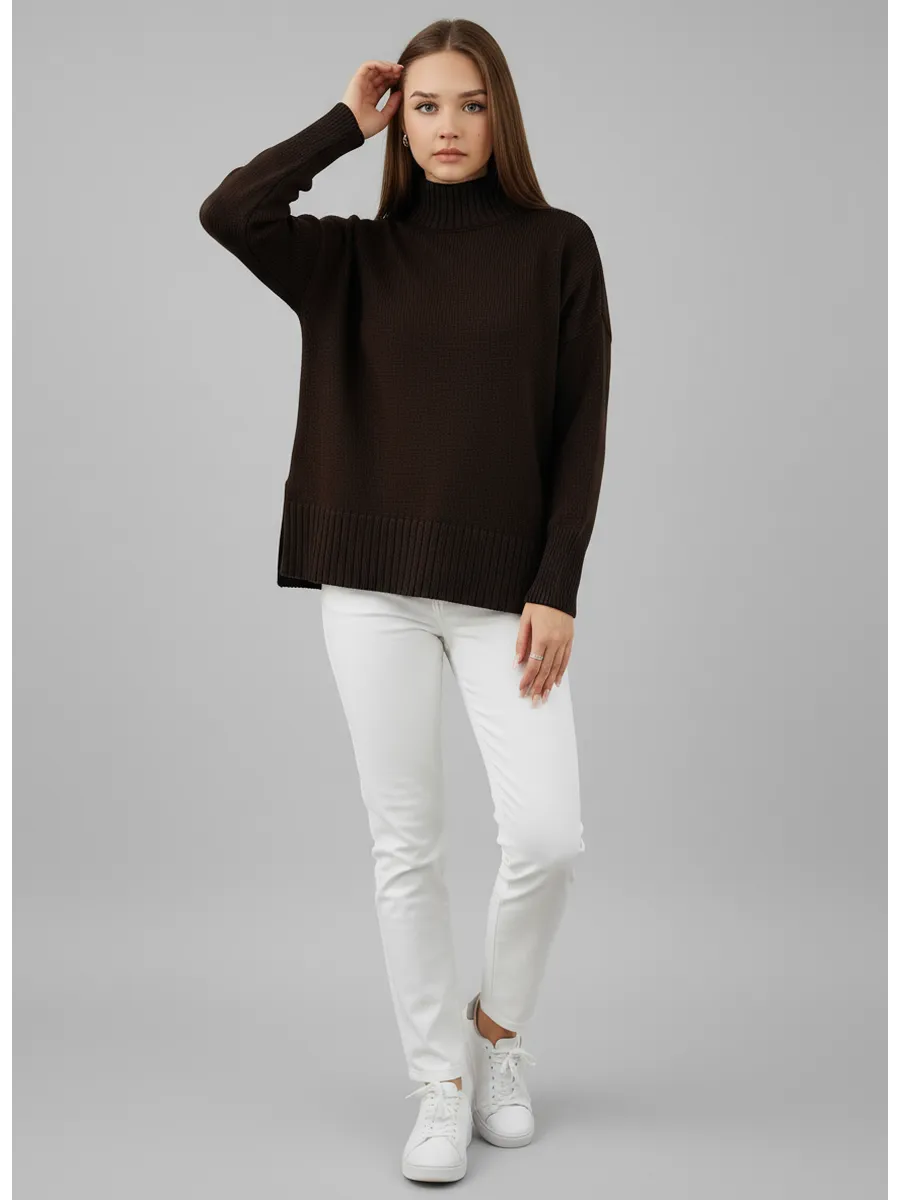 Свитер оверсайз с горлом теплый шерстяной Джемпер