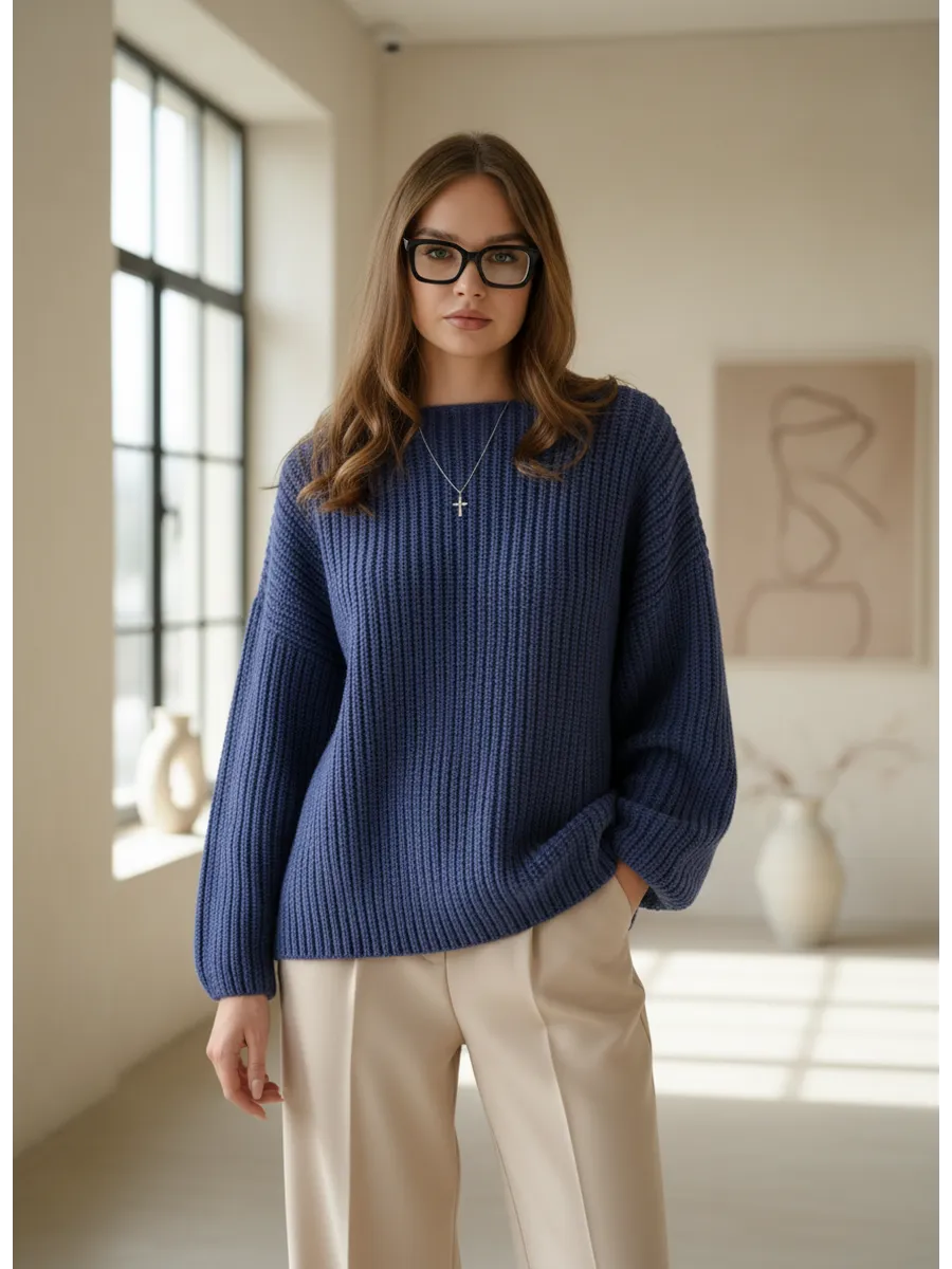 Элегантный и комфортный женский свитер оверсайз идеально подойдет для осени и зимы. . Модель невероятно мягкая и приятна к телу. Изготовленный из высококачественной смесовой пряжи,30% шерсти и 70% акрила, он обеспечит оптимальную теплоту и мягкость. Гипоаллергенная ткань подарит ощущение уюта в холодные дни. Приглушённые оттенки делают свитер универсальным дополнением к любому стилю одежды, будь то классический стиль или свитер женский оверсайз с рубашкой. Широкие рукава и вырез горловины лодочкой добавляют образу мягкости и романтики. Высококачественная вязка и надежные швы обеспечат долговечность и практичность в носке. Этот вязаный свитер станет незаменимым элементом вашего гардероба, подходящим как для офисного стиля, так и для повседневной жизни.