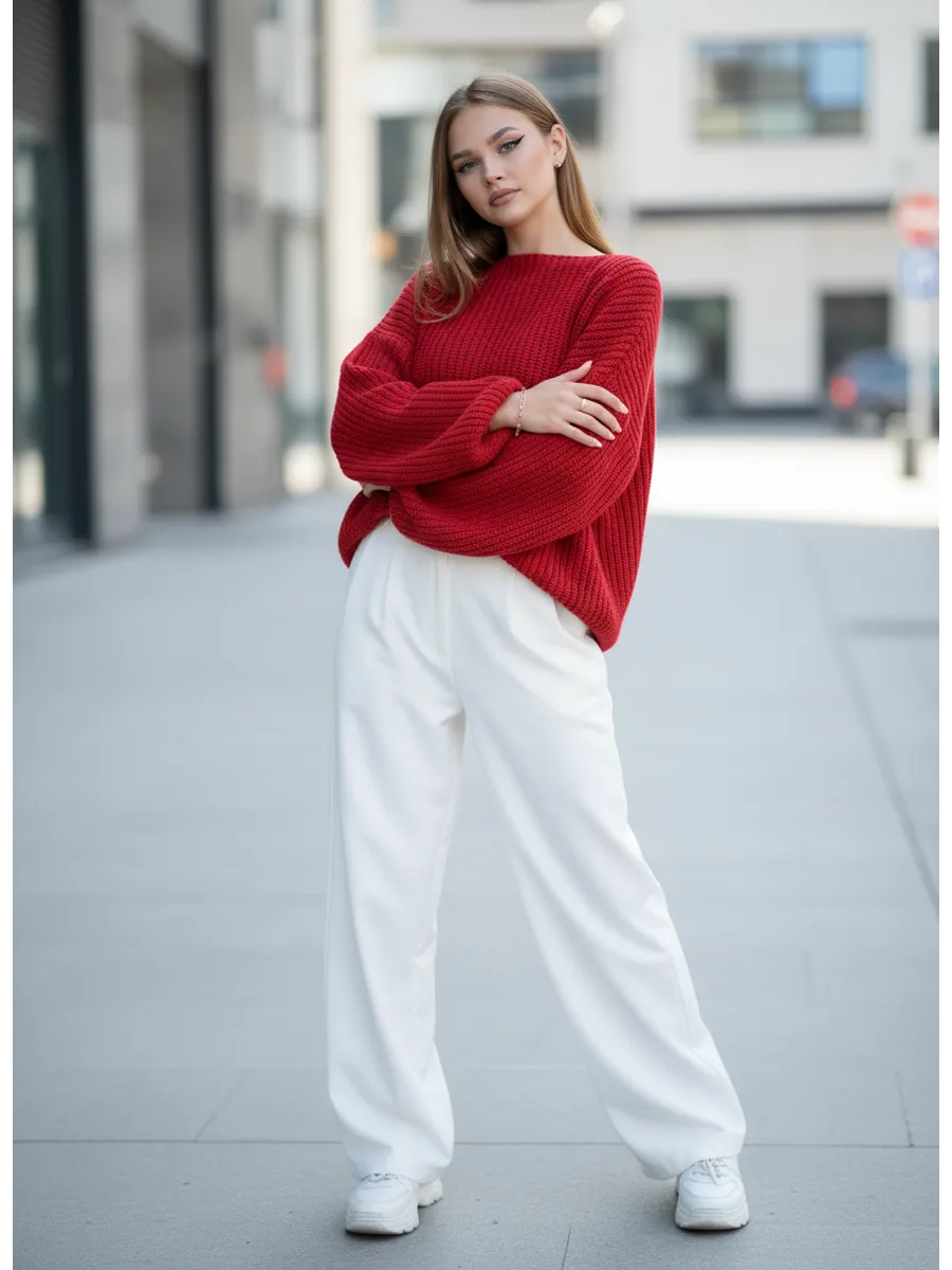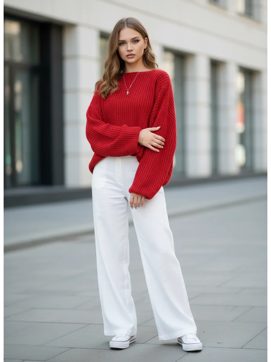 Элегантный и комфортный женский свитер оверсайз идеально подойдет для осени и зимы. . Модель невероятно мягкая и приятна к телу. Изготовленный из высококачественной смесовой пряжи,30% шерсти и 70% акрила, он обеспечит оптимальную теплоту и мягкость. Гипоаллергенная ткань подарит ощущение уюта в холодные дни. Приглушённые оттенки делают свитер универсальным дополнением к любому стилю одежды, будь то классический стиль или свитер женский оверсайз с рубашкой. Широкие рукава и вырез горловины лодочкой добавляют образу мягкости и романтики. Высококачественная вязка и надежные швы обеспечат долговечность и практичность в носке. Этот вязаный свитер станет незаменимым элементом вашего гардероба, подходящим как для офисного стиля, так и для повседневной жизни.